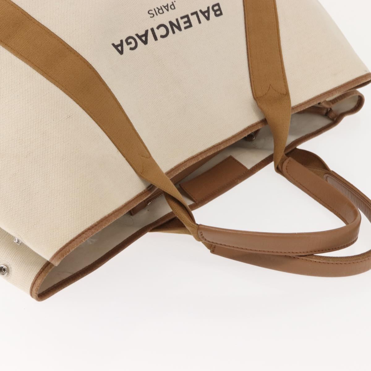 BALENCIAGA Navy Cabas Bag Canvas Leather Light Beige Silver 339936 - gh1160