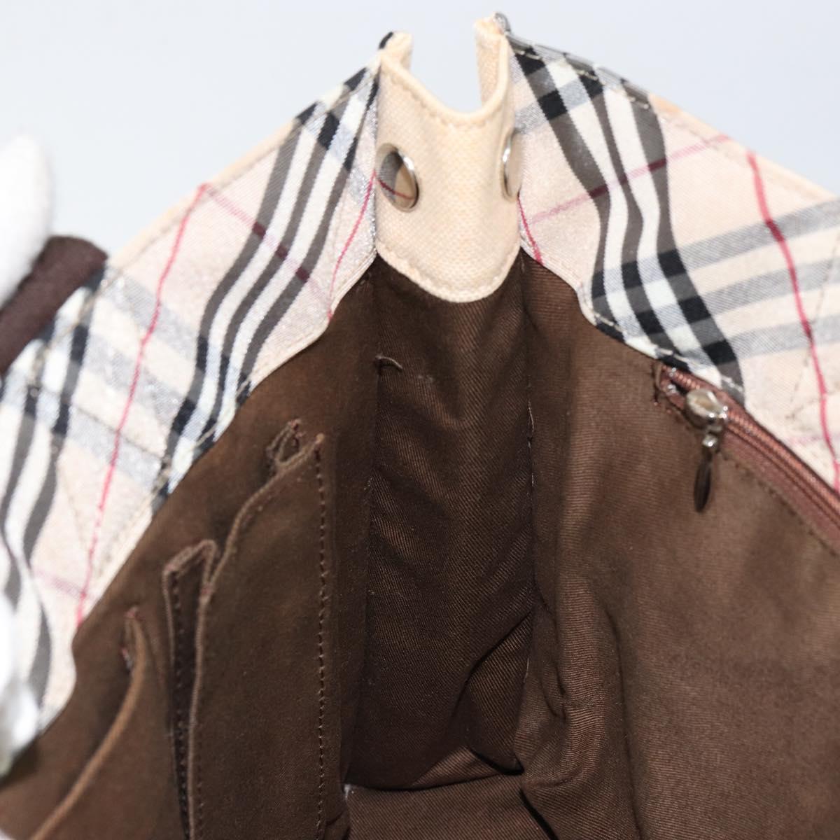 BURBERRY Nova Check Blue Label Tote Bag Nylon Beige Silver - bs30763