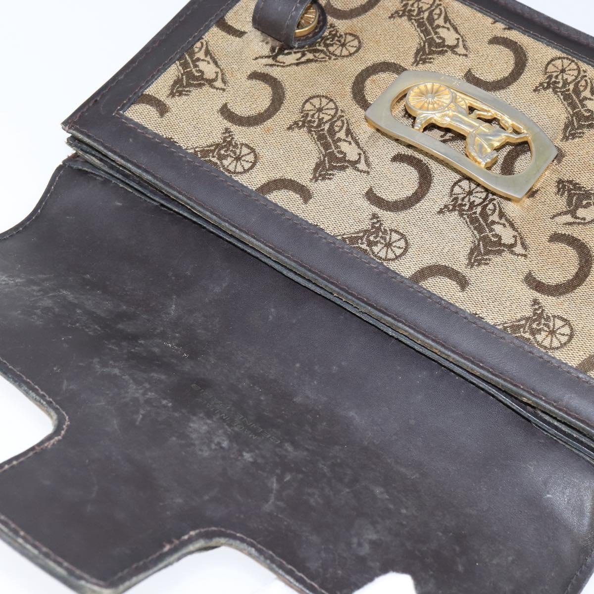 CELINE C Sulky Hand Bag Canvas Leather Brown Gold - 147776