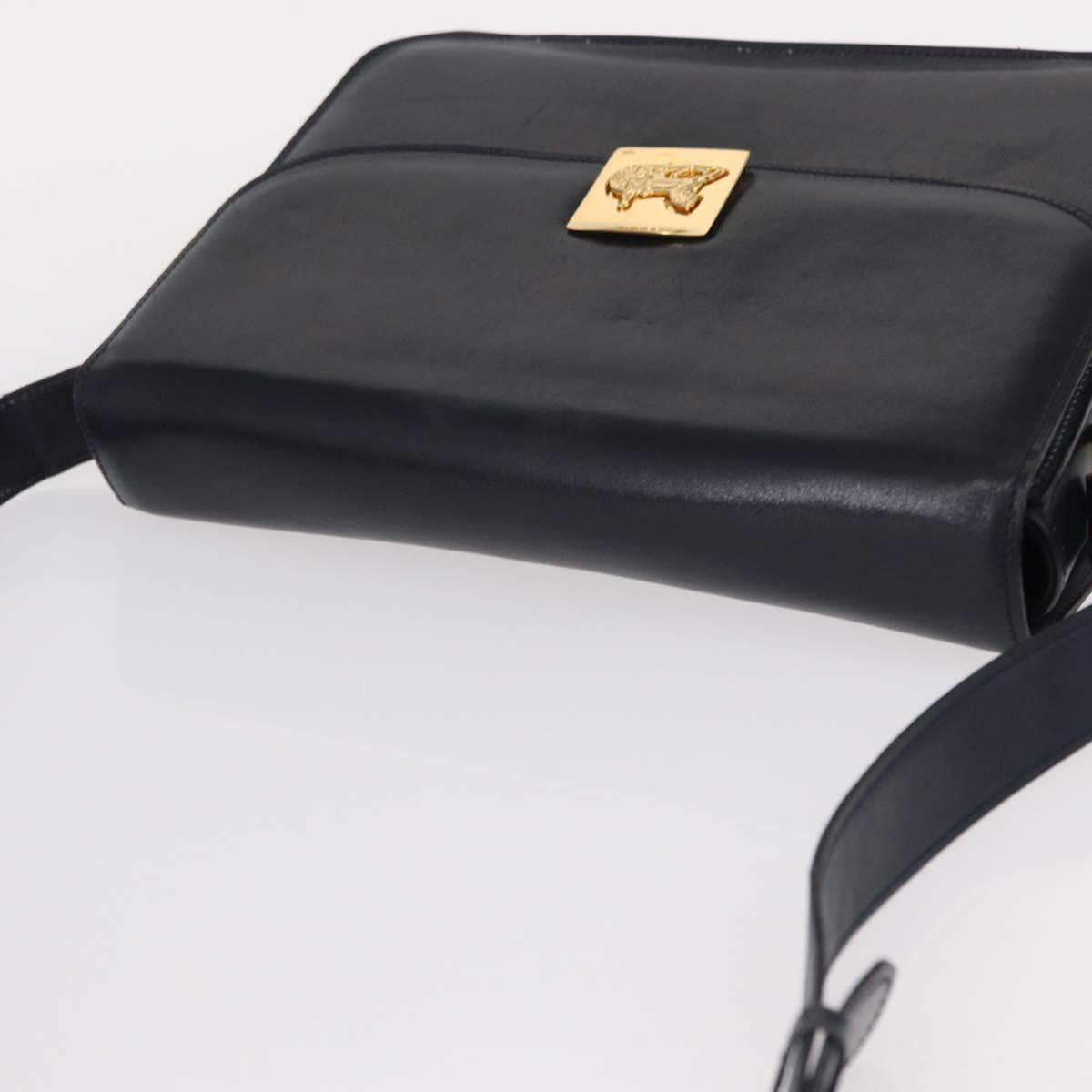 CELINE Horse Carriage Shoulder Bag Leather Navy Gold - 150952