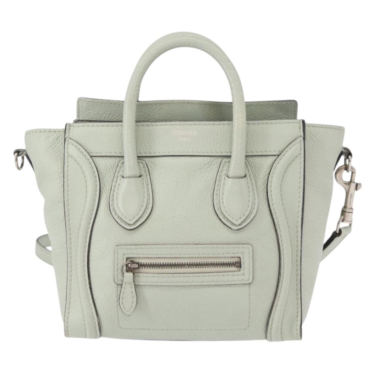 CELINE Luggage Nano Shopper Hand Bag Leather 2way Light Blue Silver - ka062