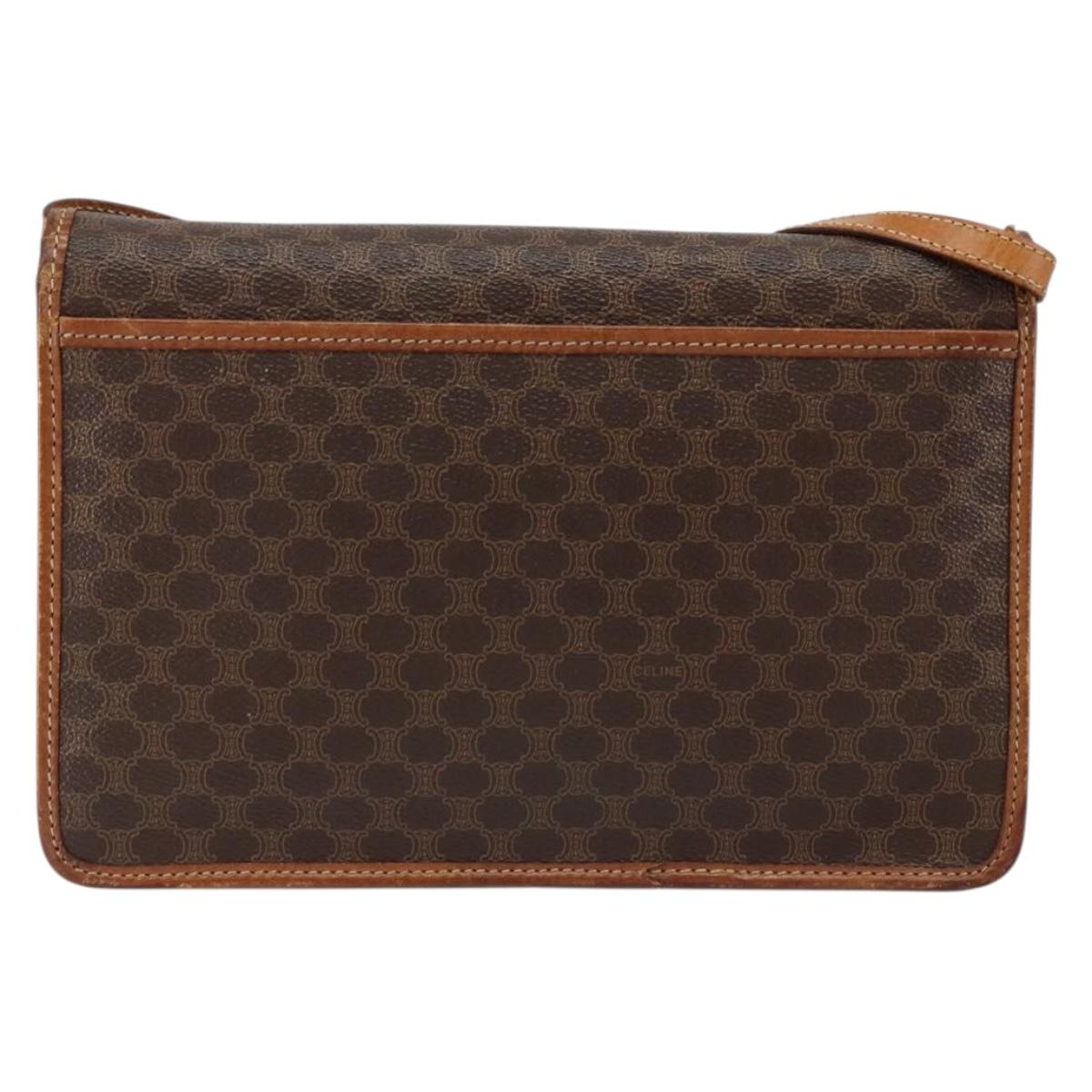 CELINE Macadam Canvas Shoulder Bag PVC Leather Beige Gold - bs30777