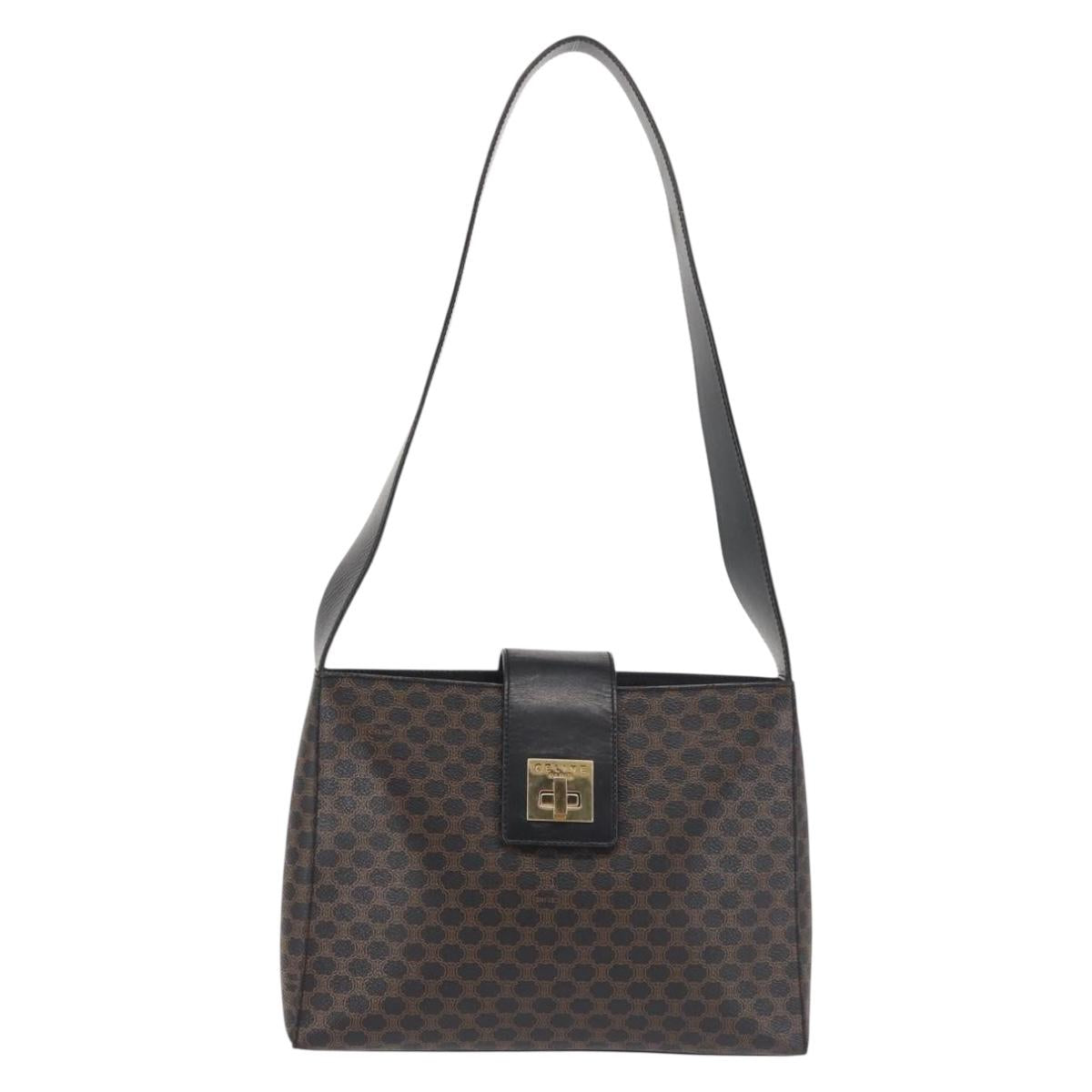 CELINE Macadam Canvas Shoulder Bag PVC Leather Black Gold - 142805