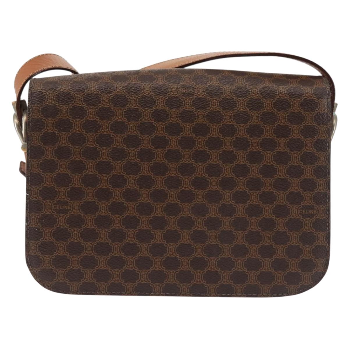 CELINE Macadam Canvas Shoulder Bag PVC Leather Brown Gold - bs29090