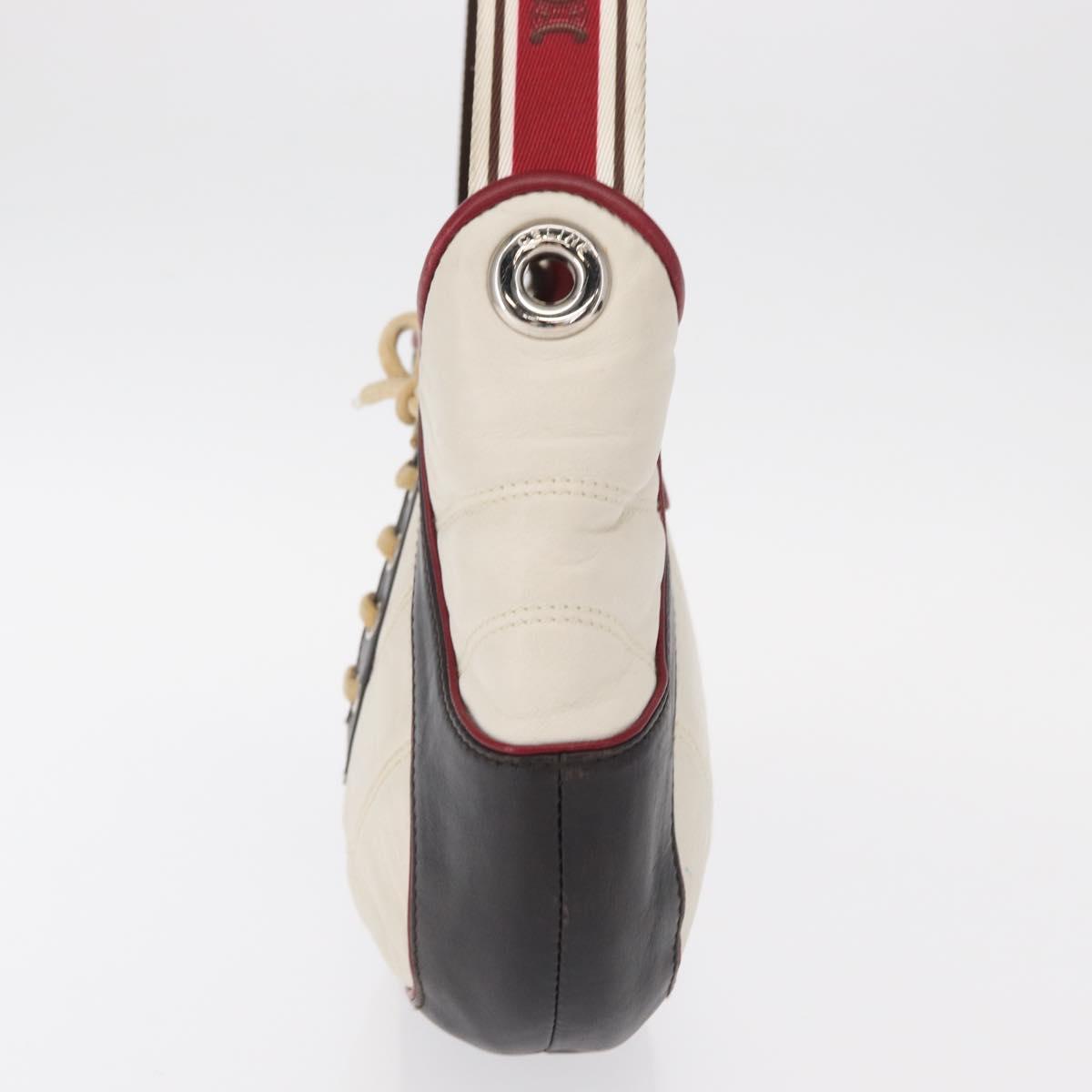 CELINE World Cup 2002 Shoulder Bag Leather White Black Silver - mr1649