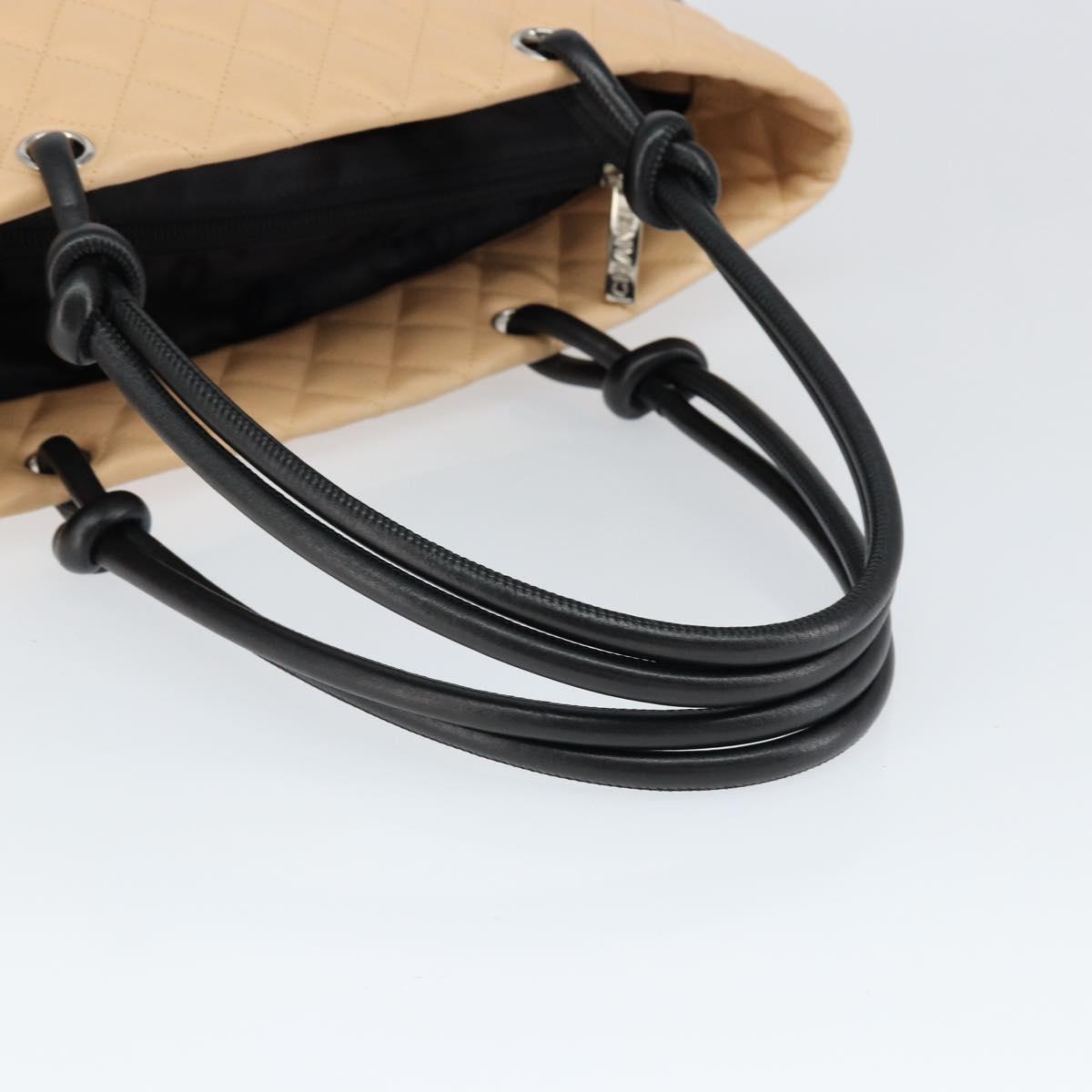 CHANEL Cambon Line Matelasse Tote Bag Lamb Skin Beige Silver CC - 149221