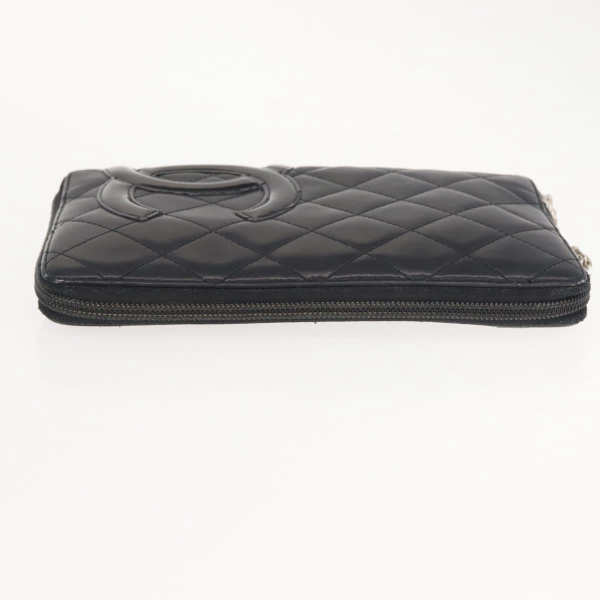 CHANEL Cambon Line Organizer Long Wallet Leather Black Silver CC - 149586