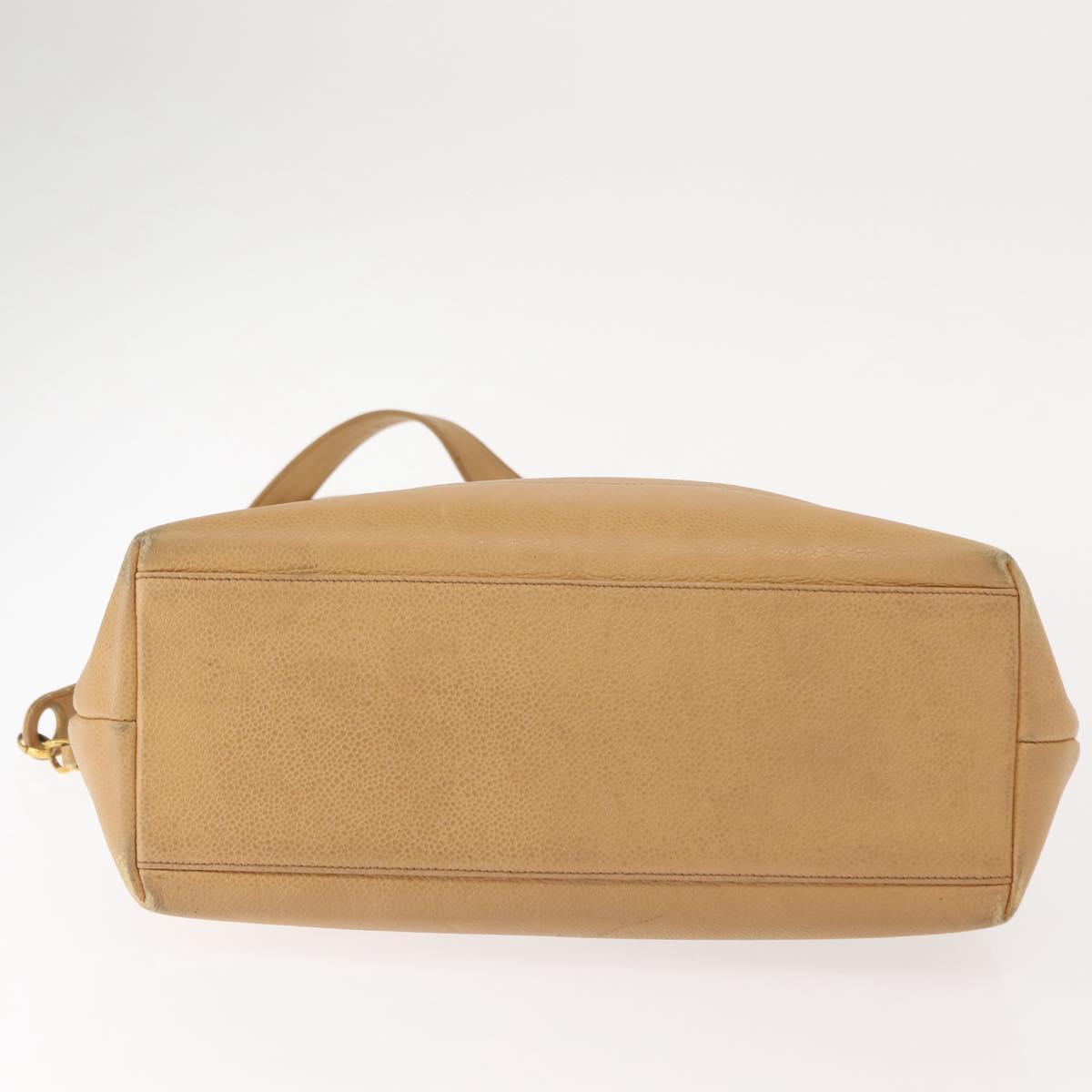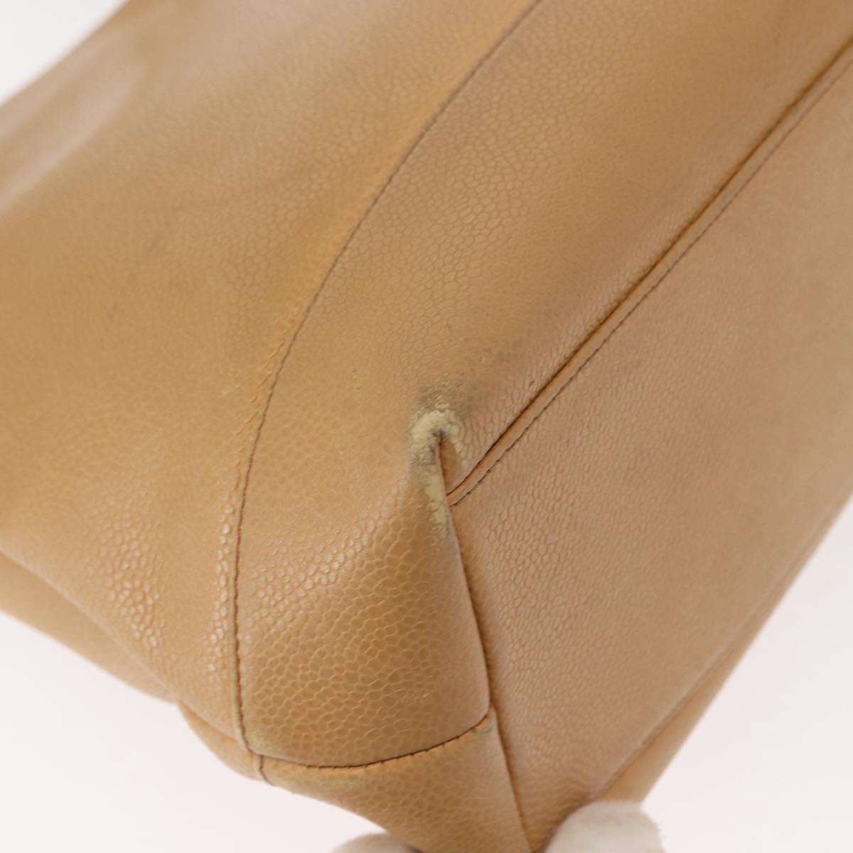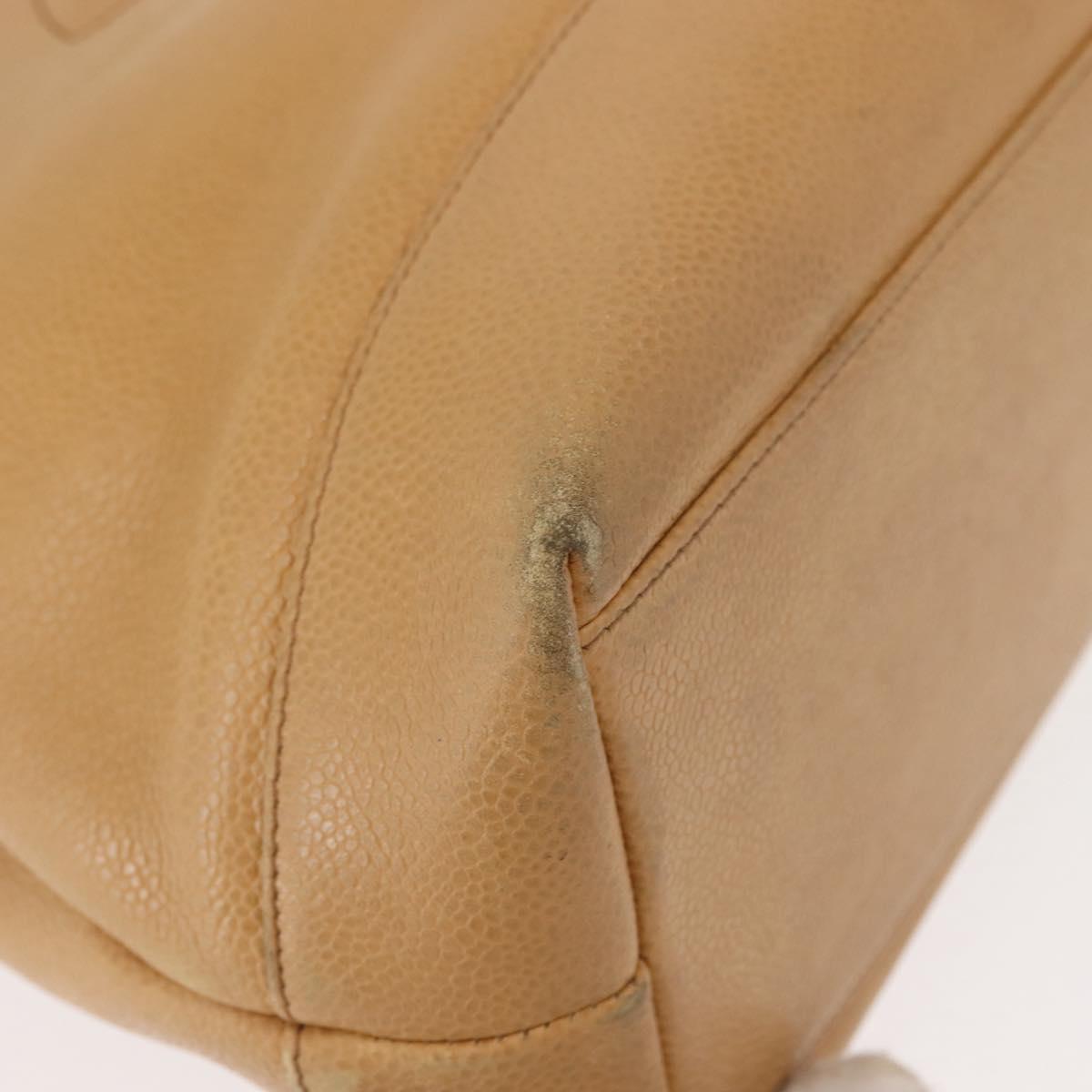 CHANEL Chain Shoulder Bag Caviar Skin Beige Gold CC - 150773
