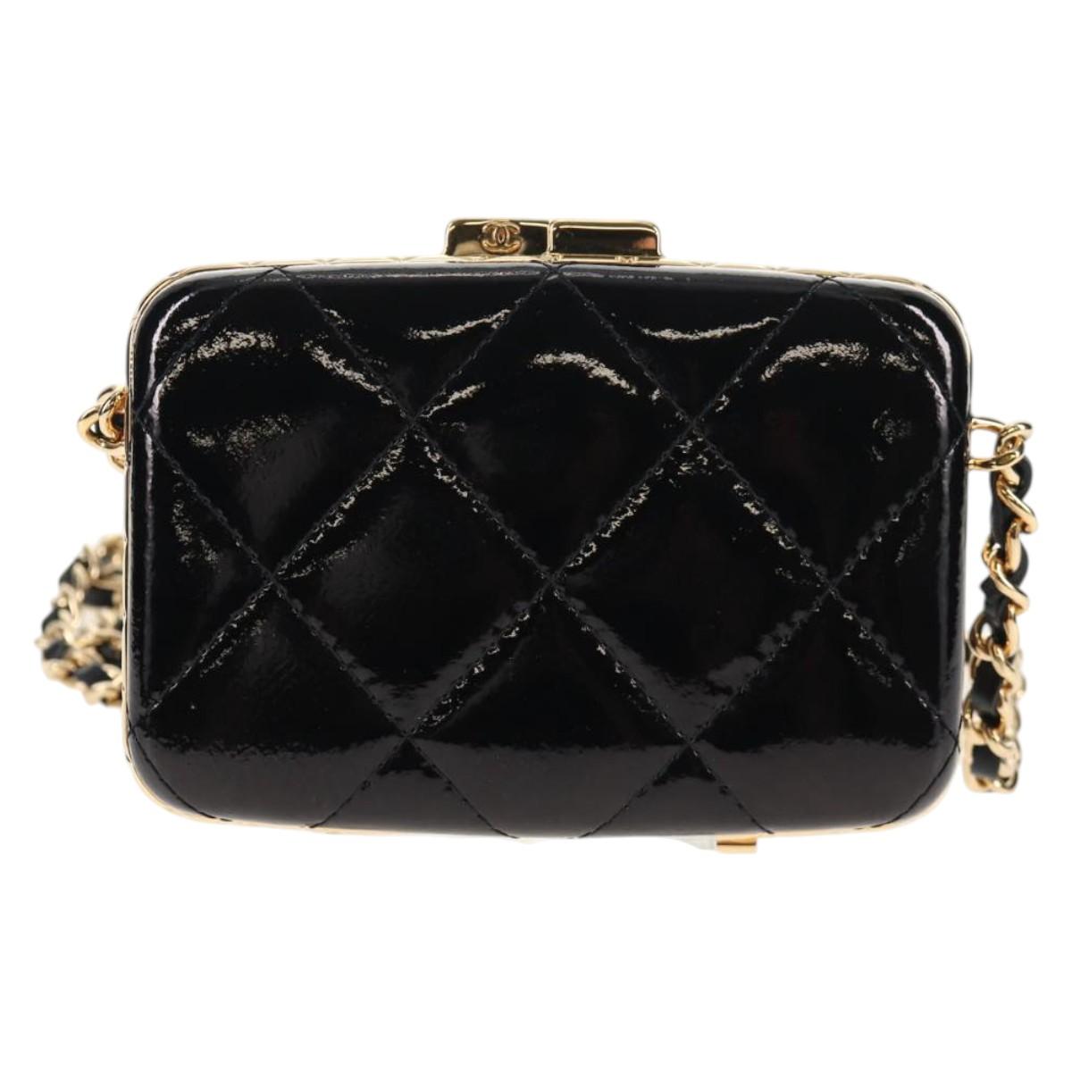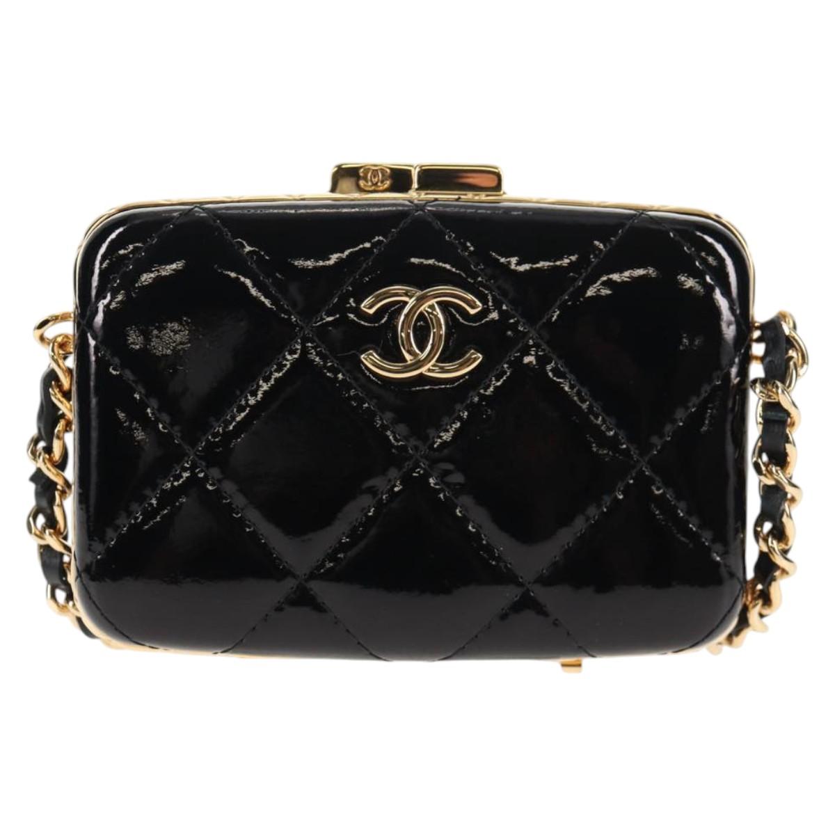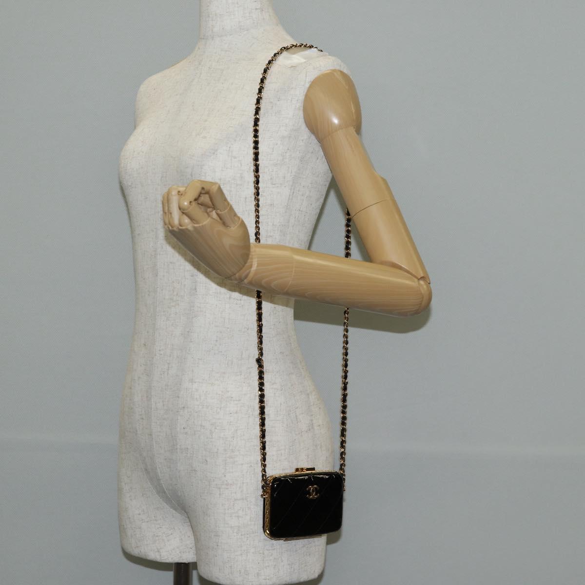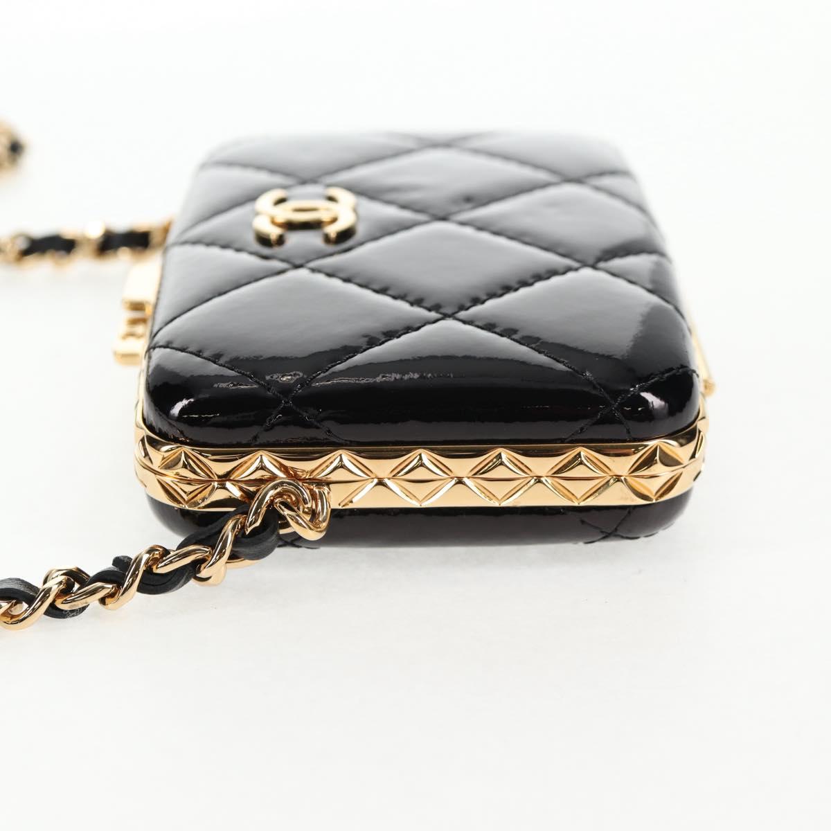 CHANEL Chain Shoulder Bag Patent leather Black Gold CC - 134911M