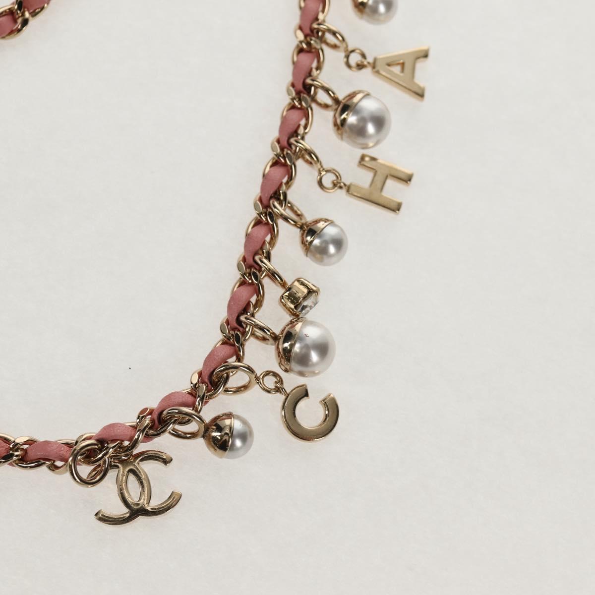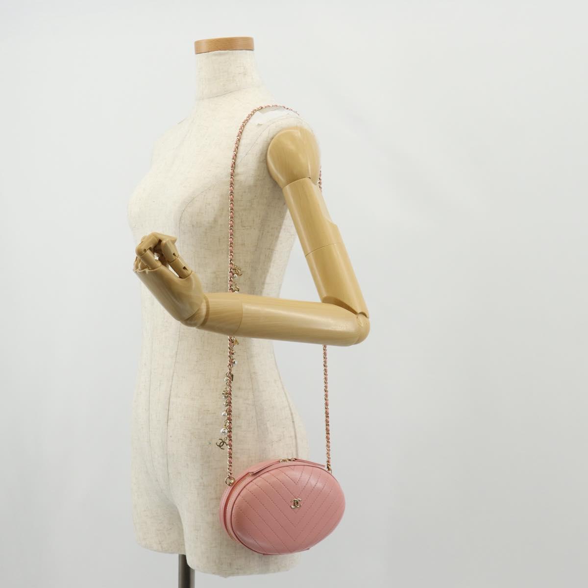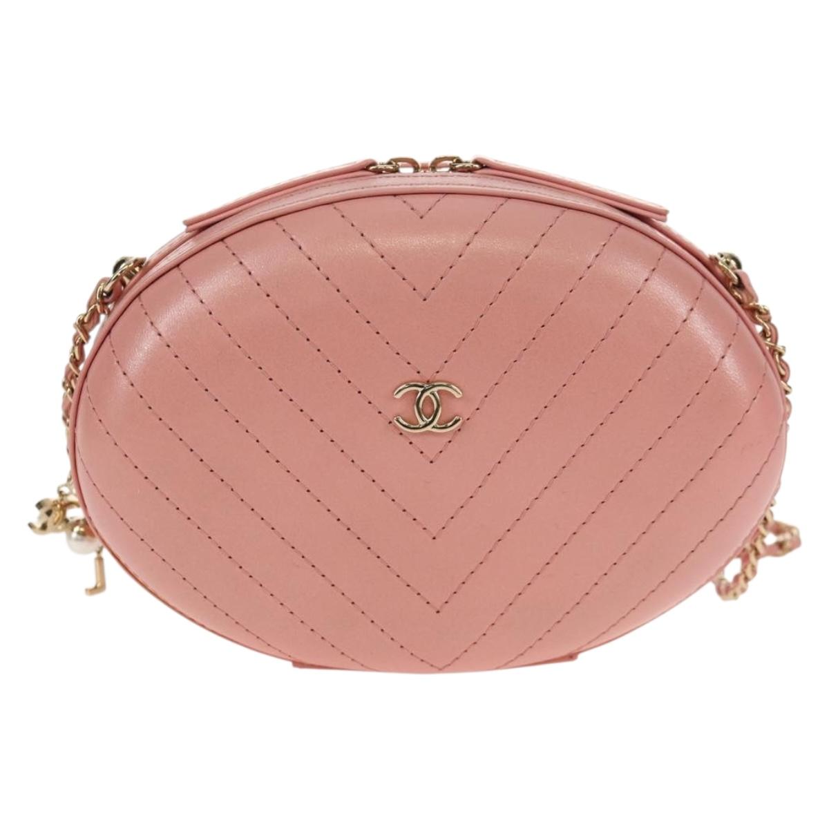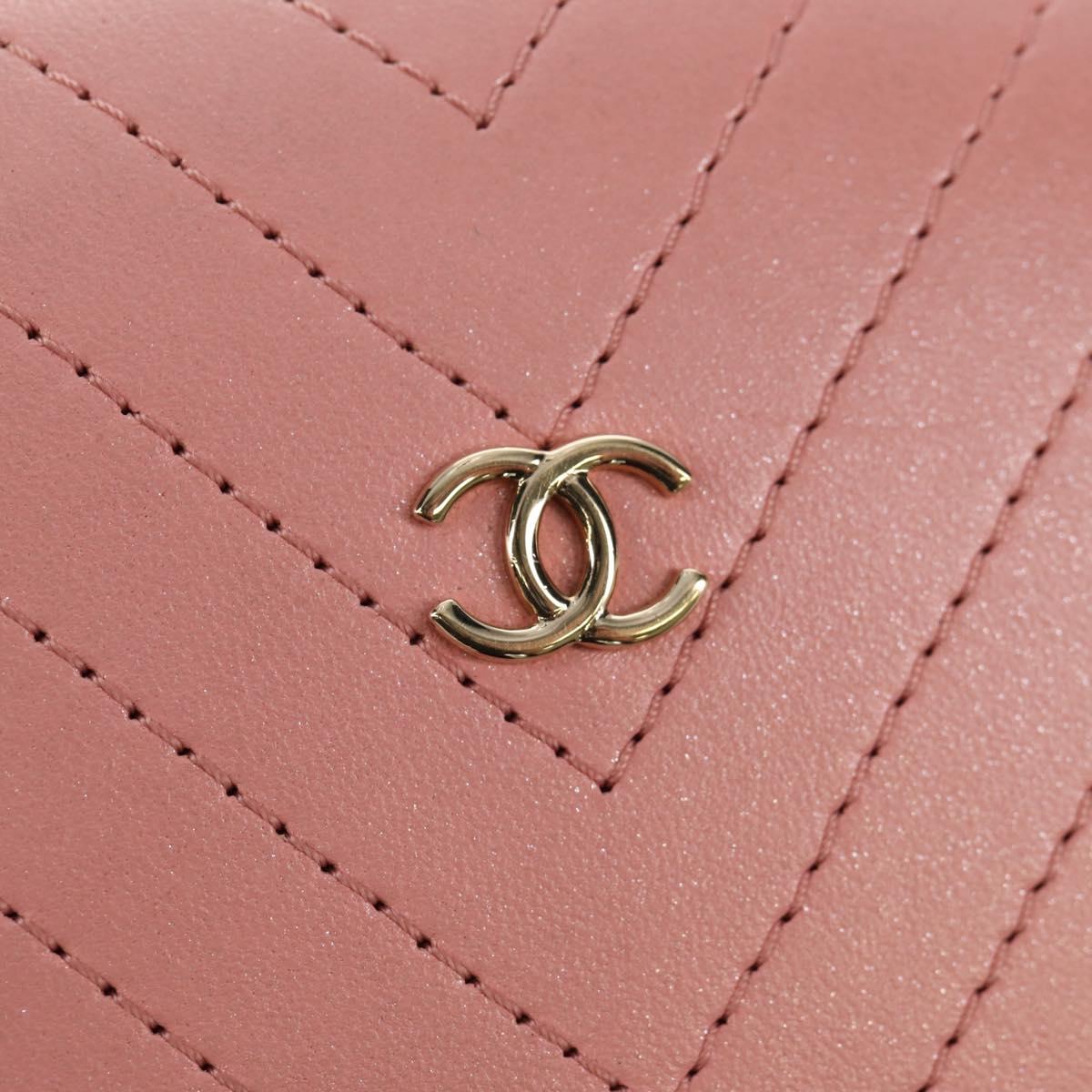 CHANEL Chain V stitch Shoulder Bag Leather Pink Gold CC - fm4939M