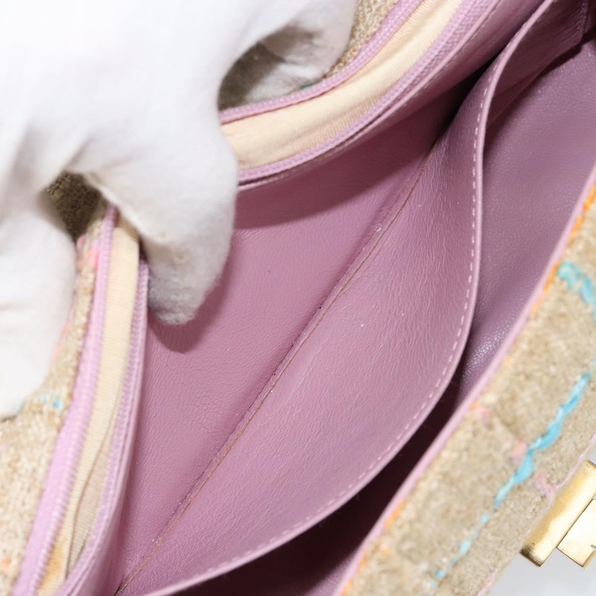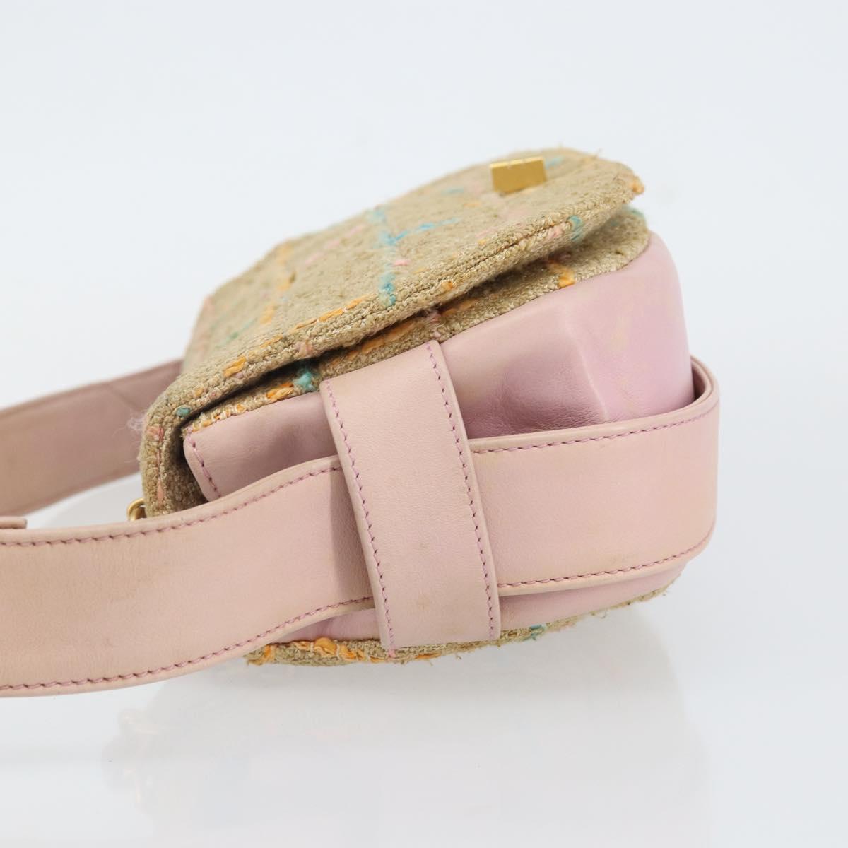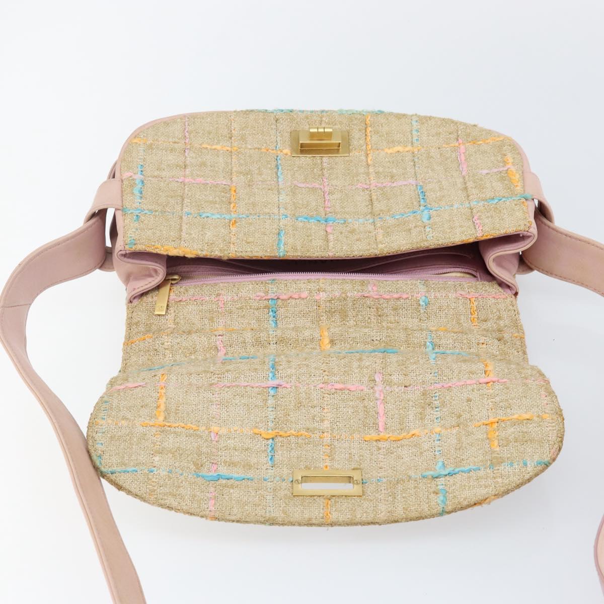 CHANEL Choco Bar 2.55 Shoulder Bag tweed 2way Beige Gold CC - 142316