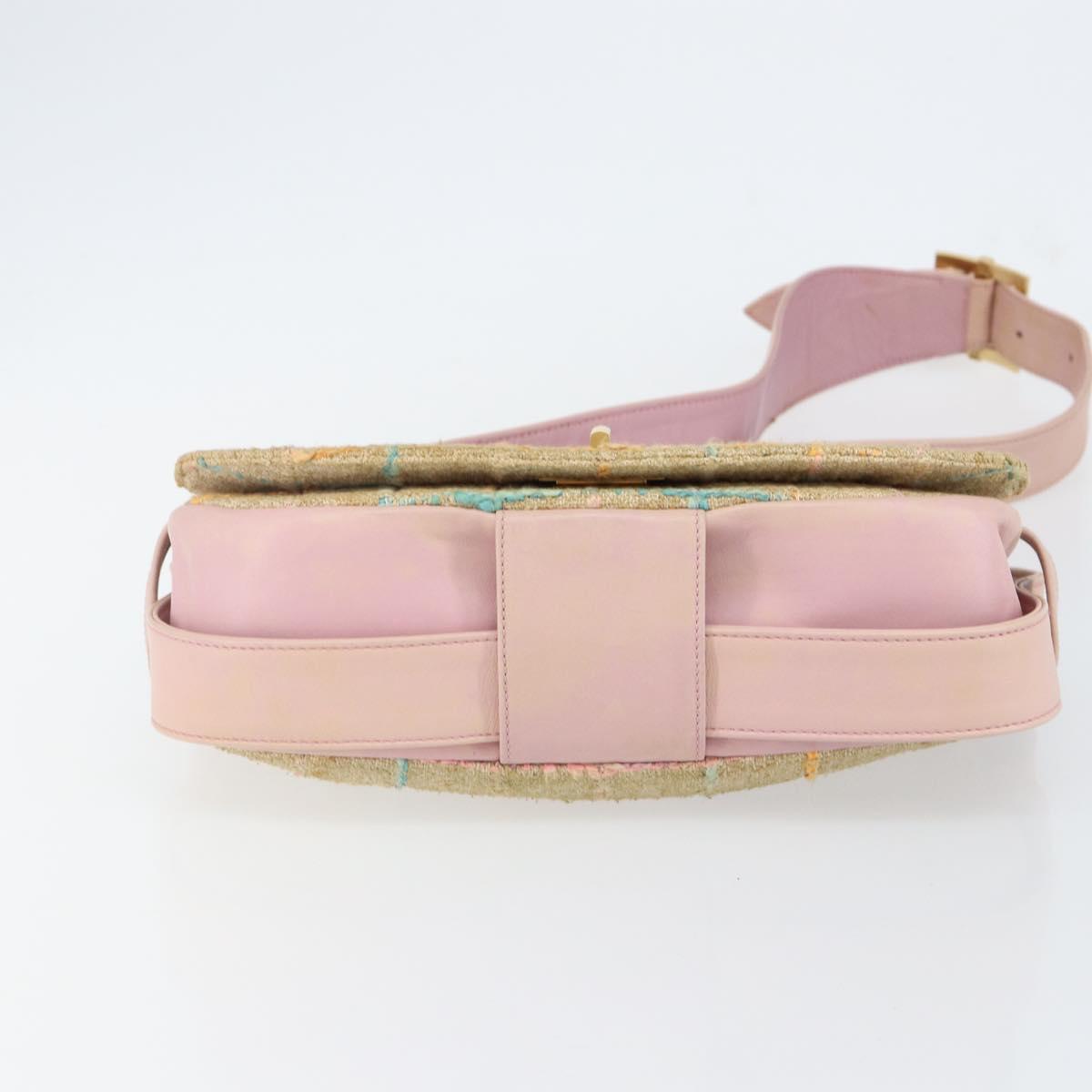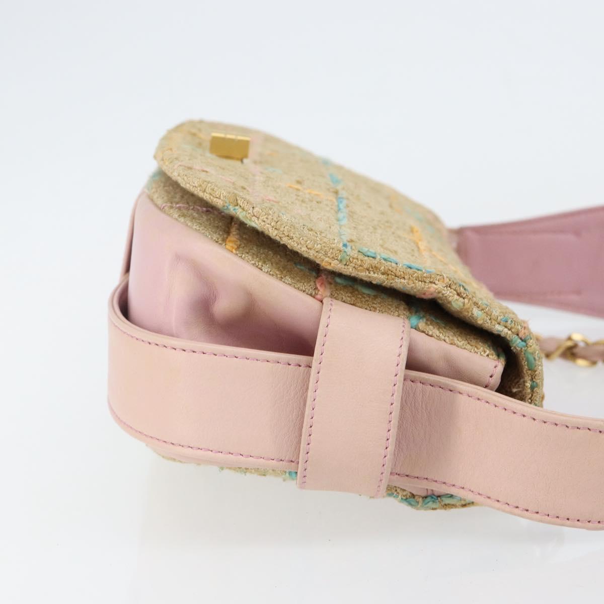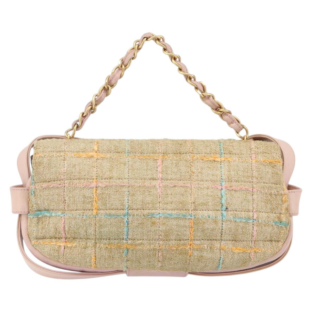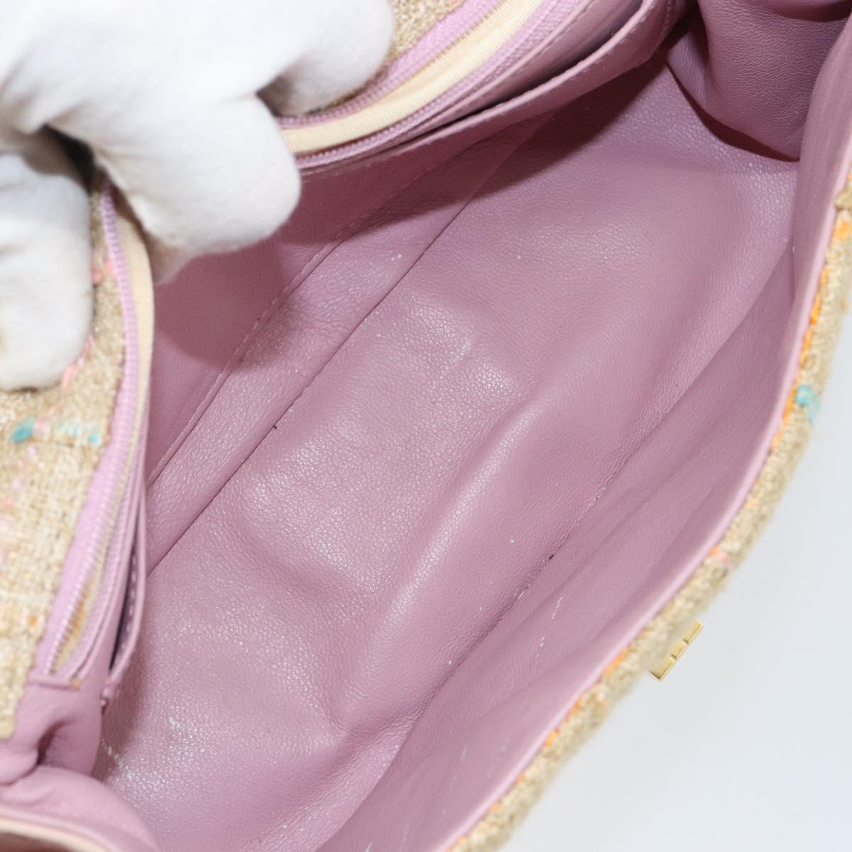 CHANEL Choco Bar 2.55 Shoulder Bag tweed 2way Beige Gold CC - 142316