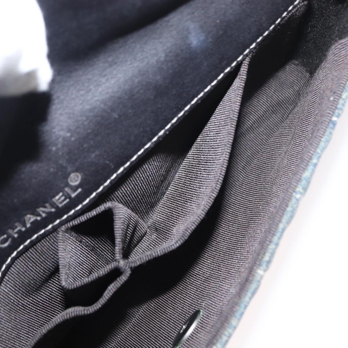 CHANEL Choco Bar Chain Shoulder Bag Denim Blue CC - 156057