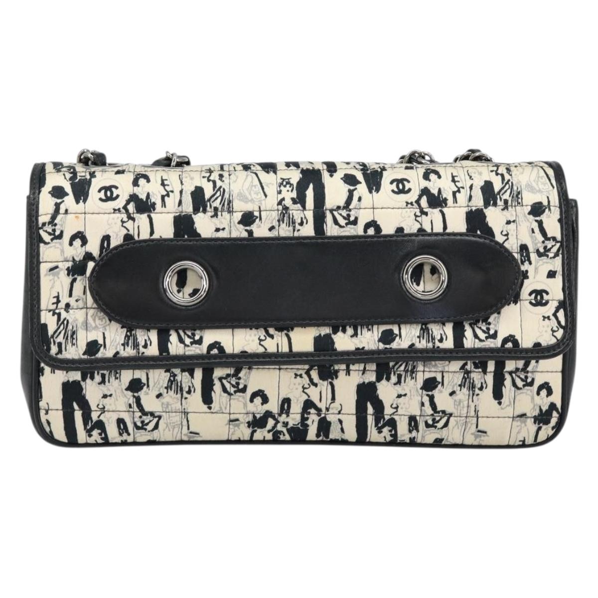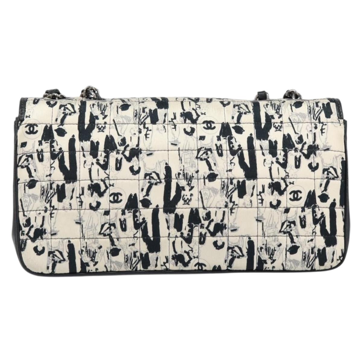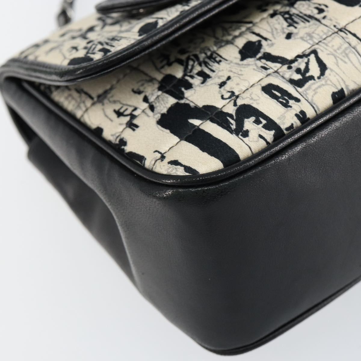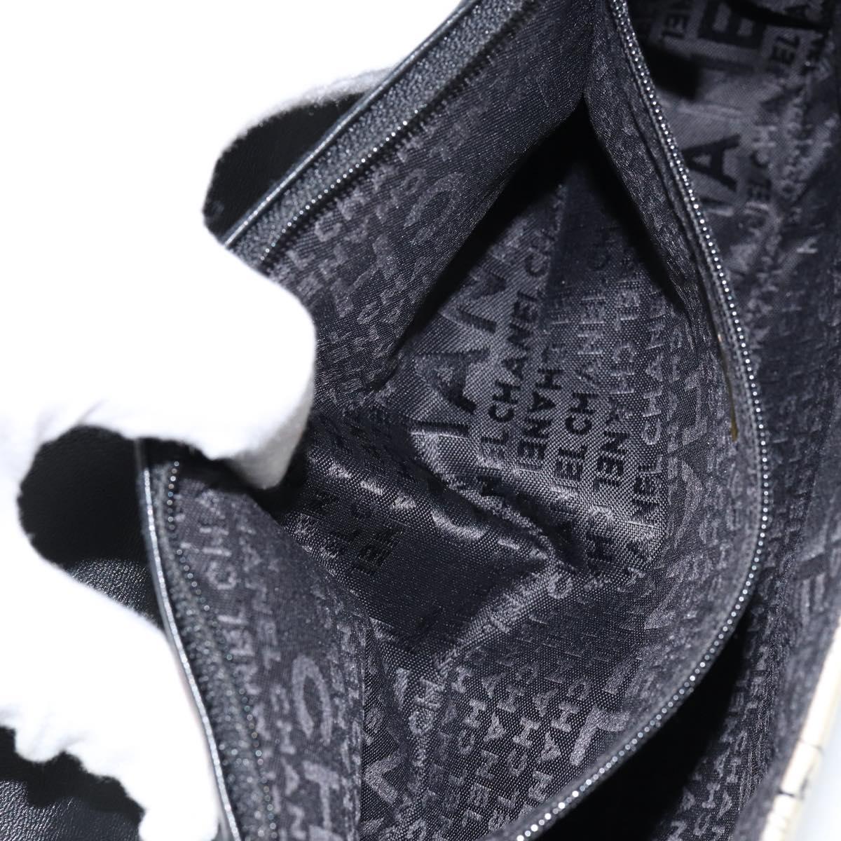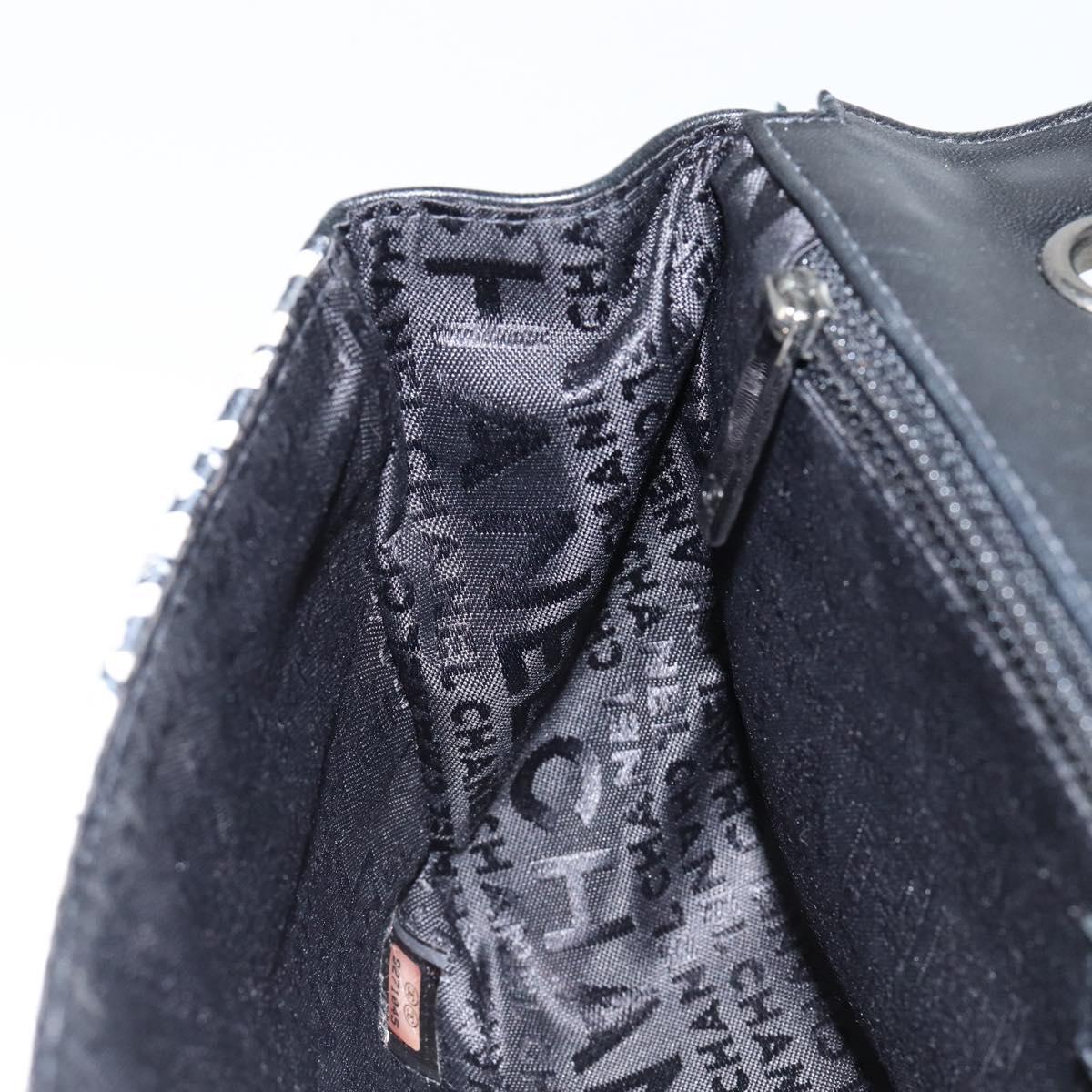CHANEL Choco Bar Chain Shoulder Bag Satin Black Silver CC - 144833V