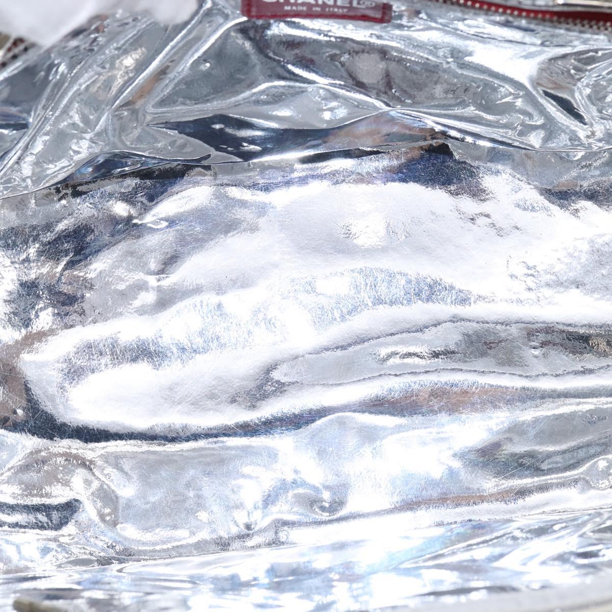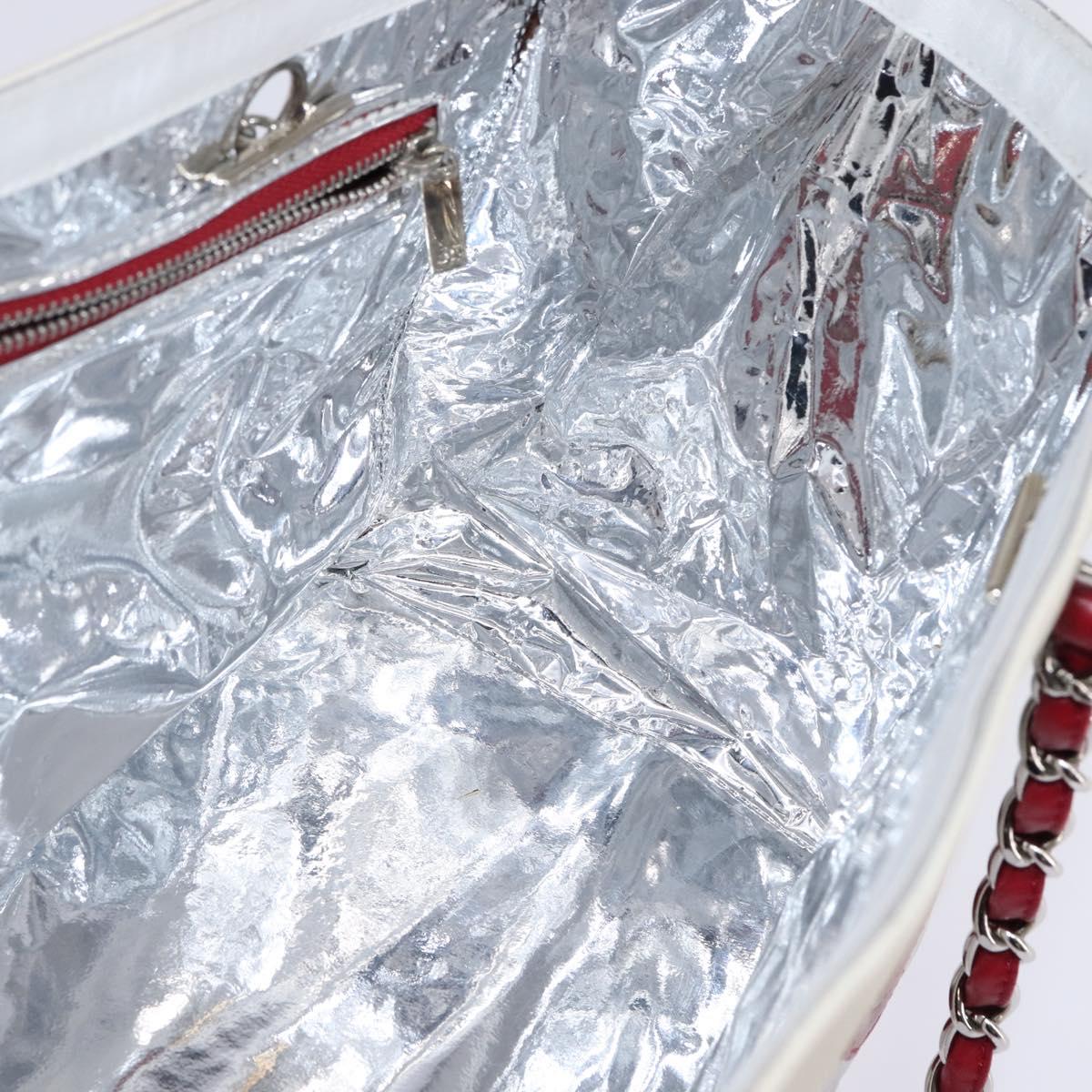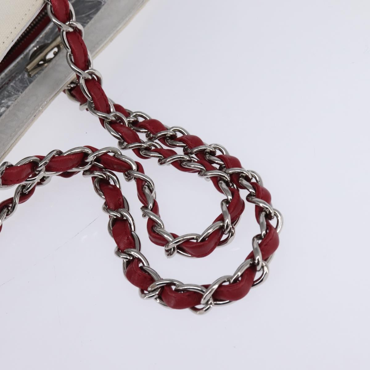CHANEL Choco Bar Chain Tote Bag No5 Canvas White Silver CC - 143980