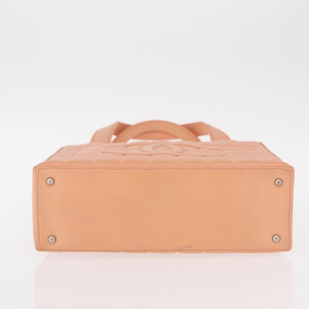 CHANEL Choco Bar Hand Bag Lamb Skin Beige CC - bs31118