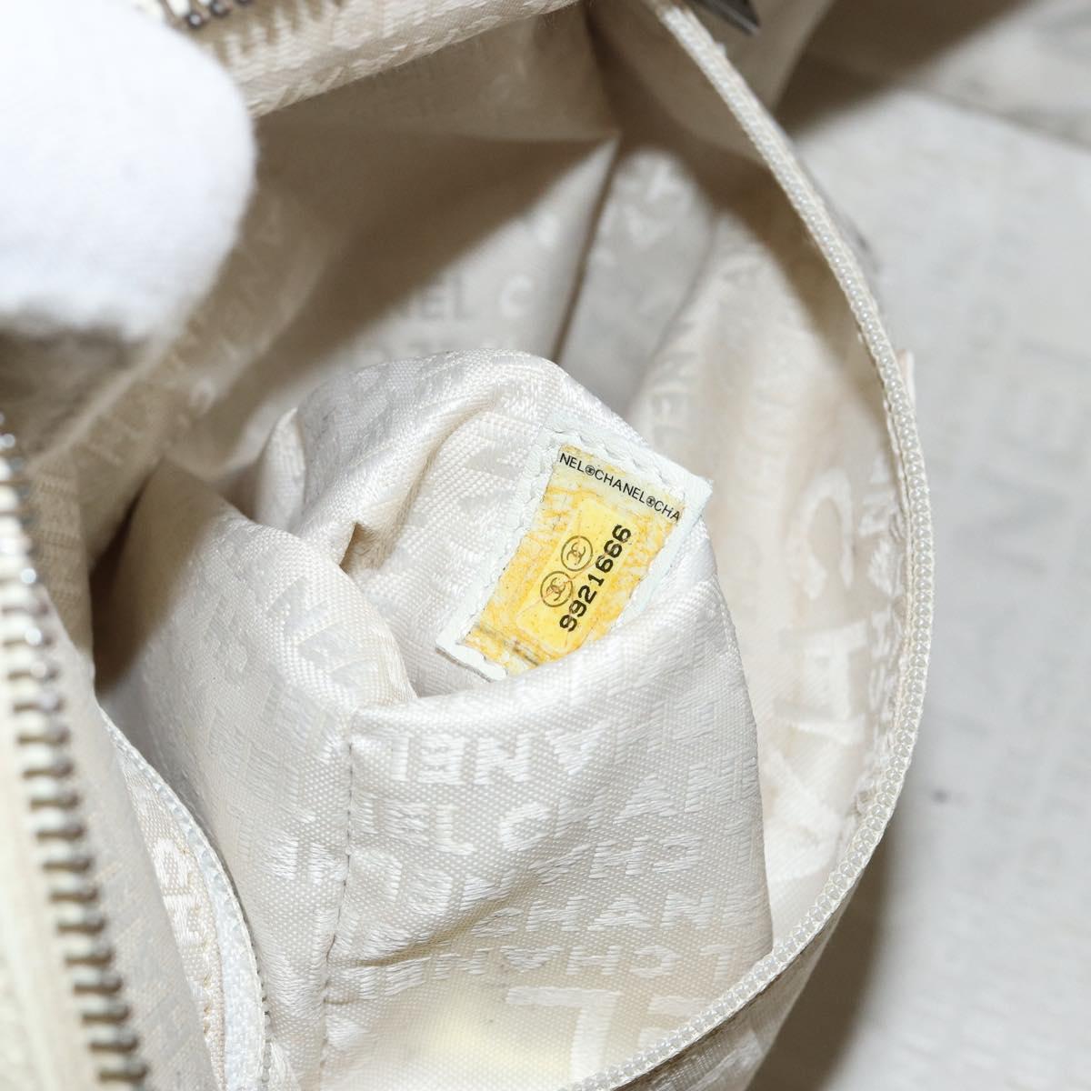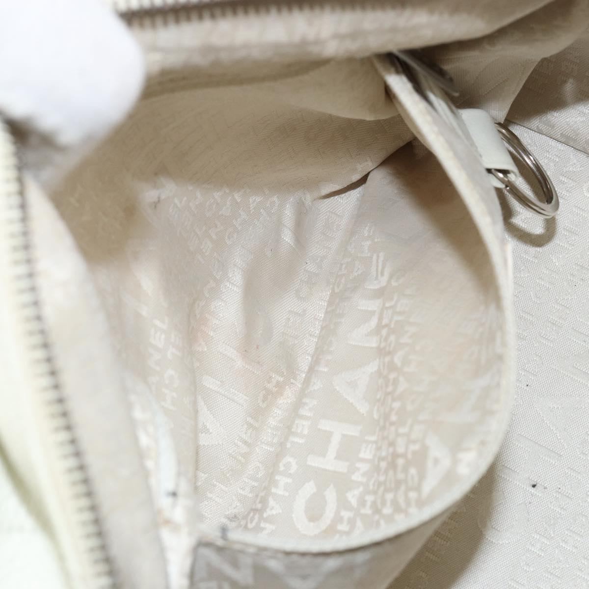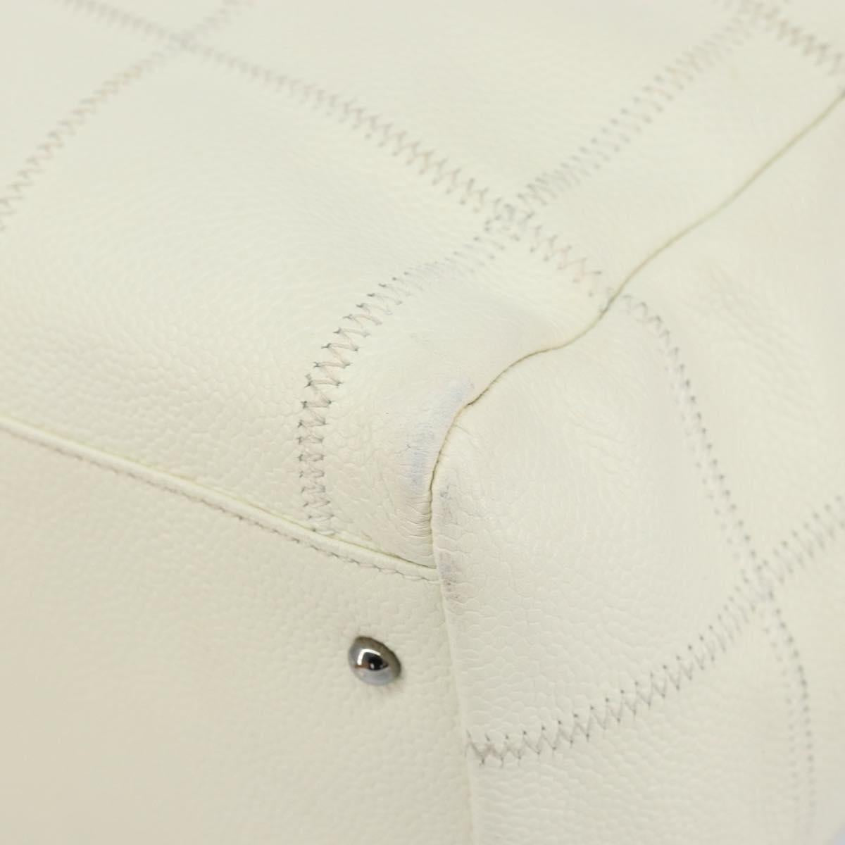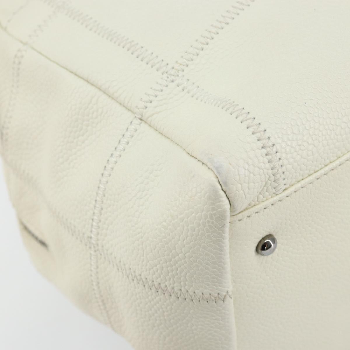 CHANEL Choco Bar Shoulder Bag Caviar Skin White Silver CC - bs30605