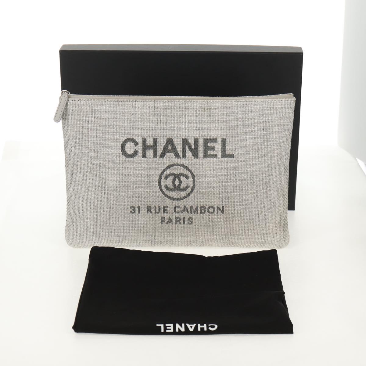 CHANEL Clutch Bag Canvas Gray CC - 148530M