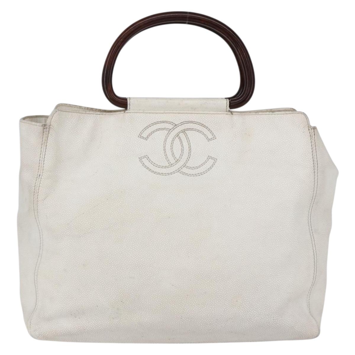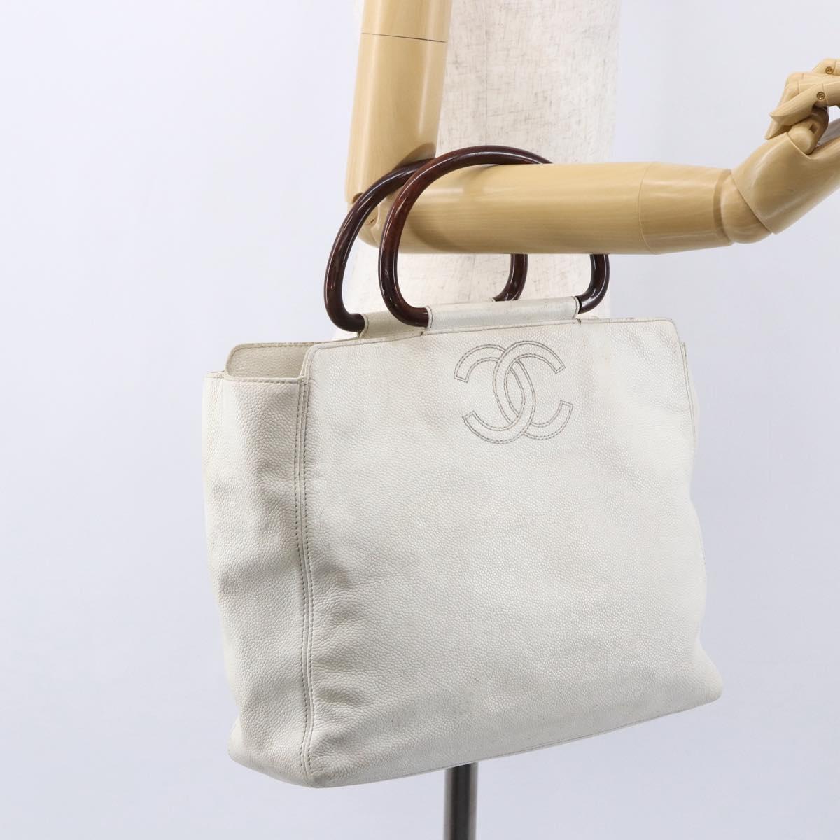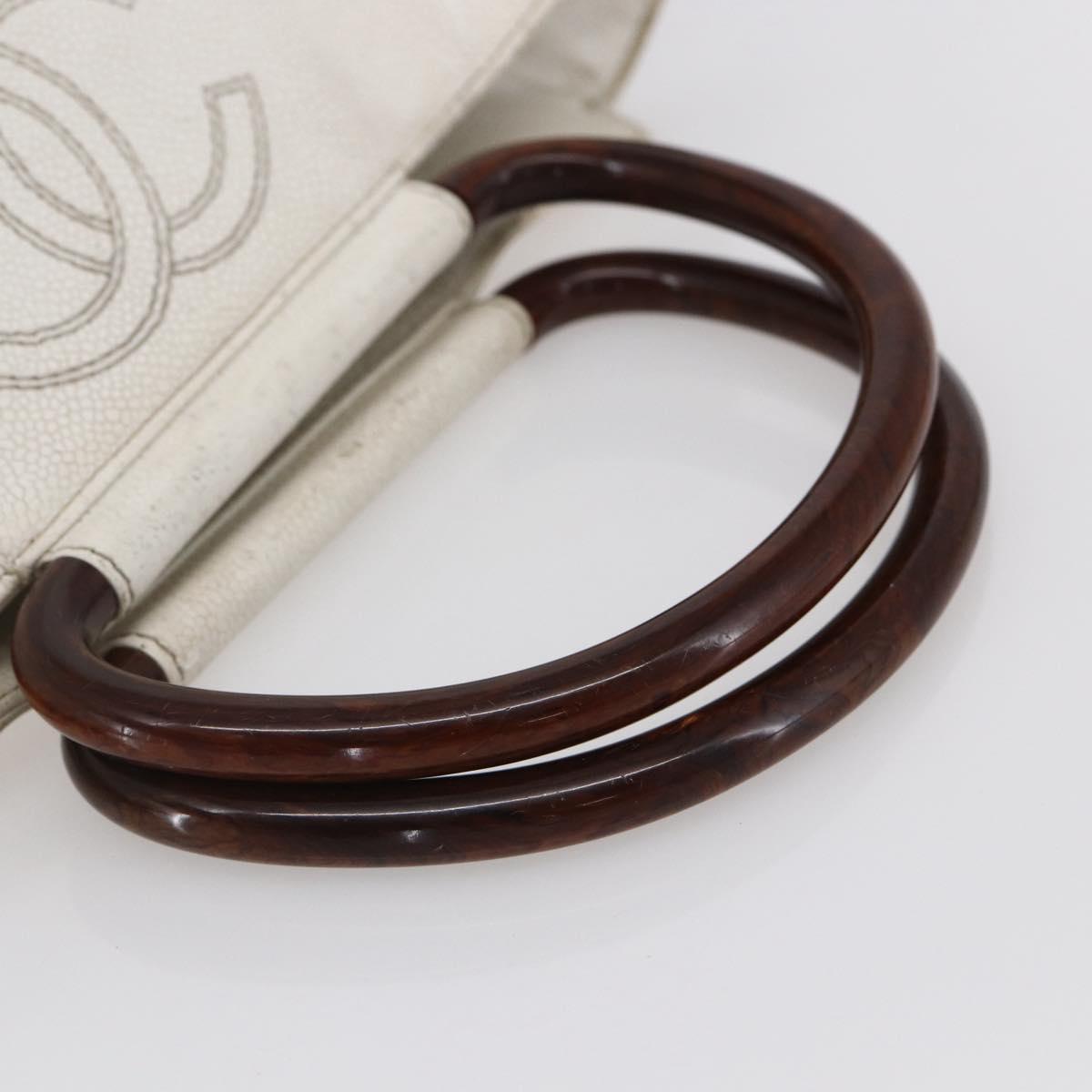 CHANEL COCO Mark Hand Bag Caviar Skin White Gold CC - bs30607