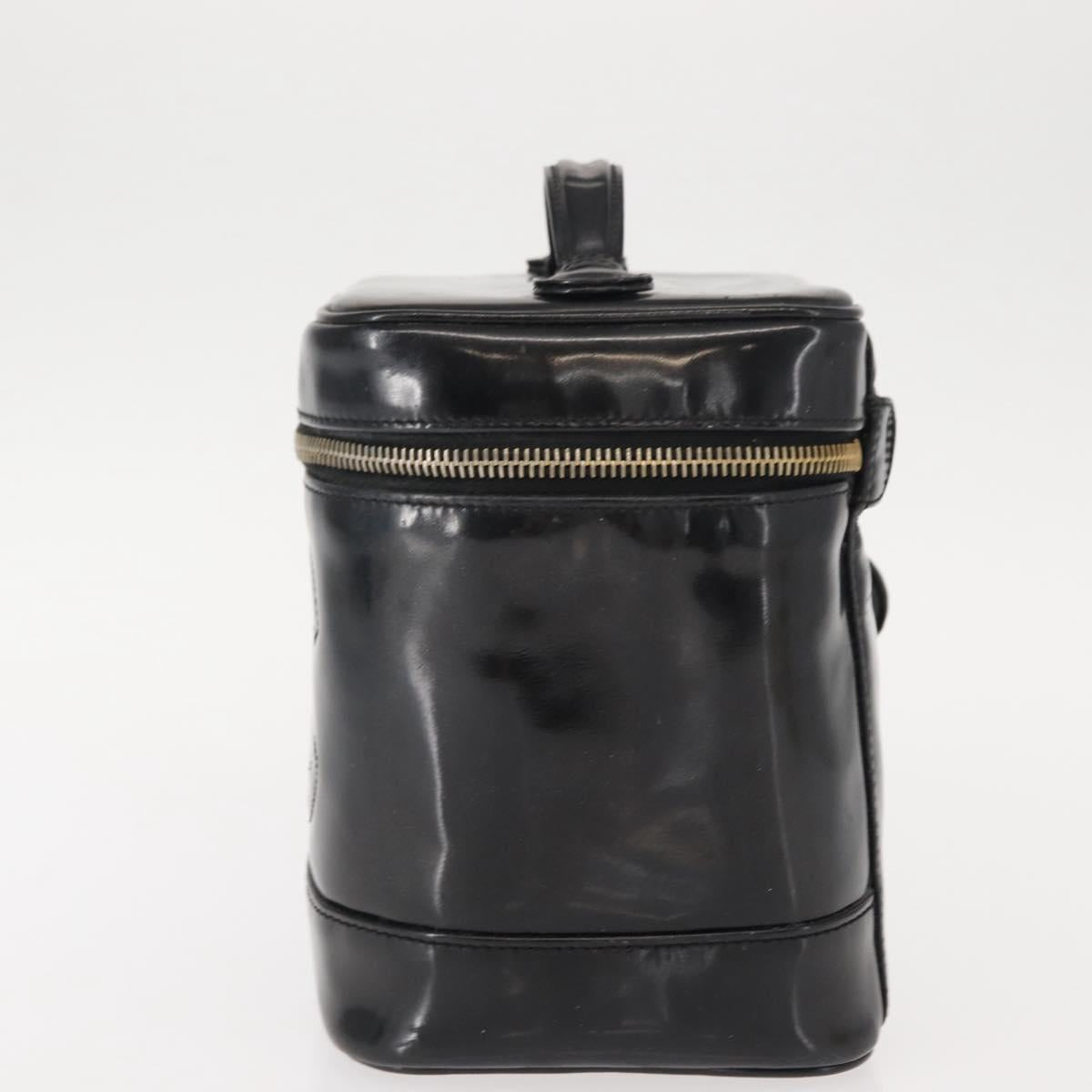 CHANEL COCO Mark Vanity Cosmetic Pouch Patent leather Black Gold CC - 151138