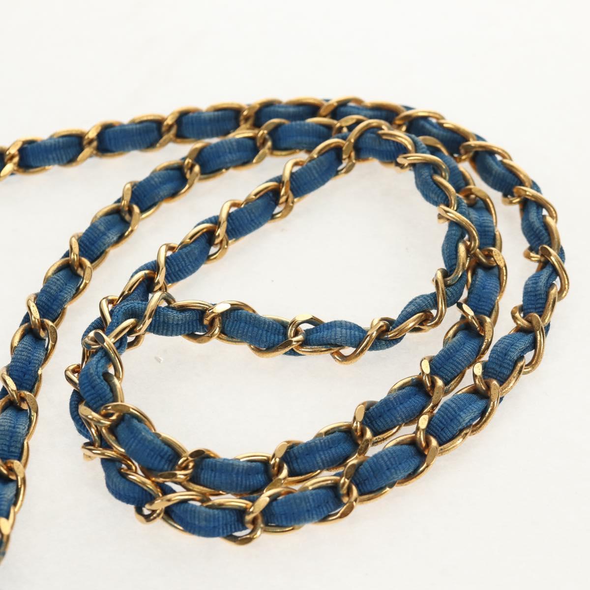 CHANEL Mademoiselle Chain Shoulder Bag Canvas Blue Gold CC - 154058SAV