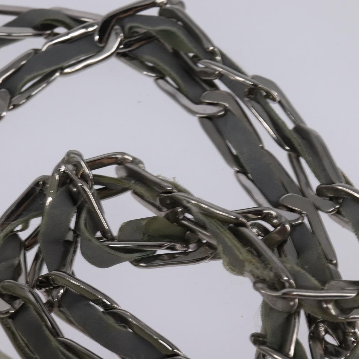 CHANEL Mademoiselle Chain Shoulder Bag Leather Silver Light green CC - 143605