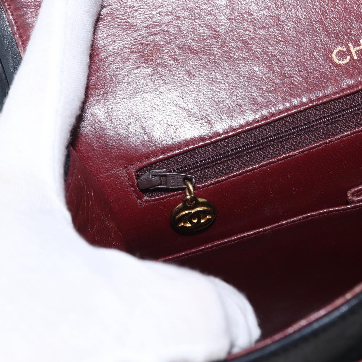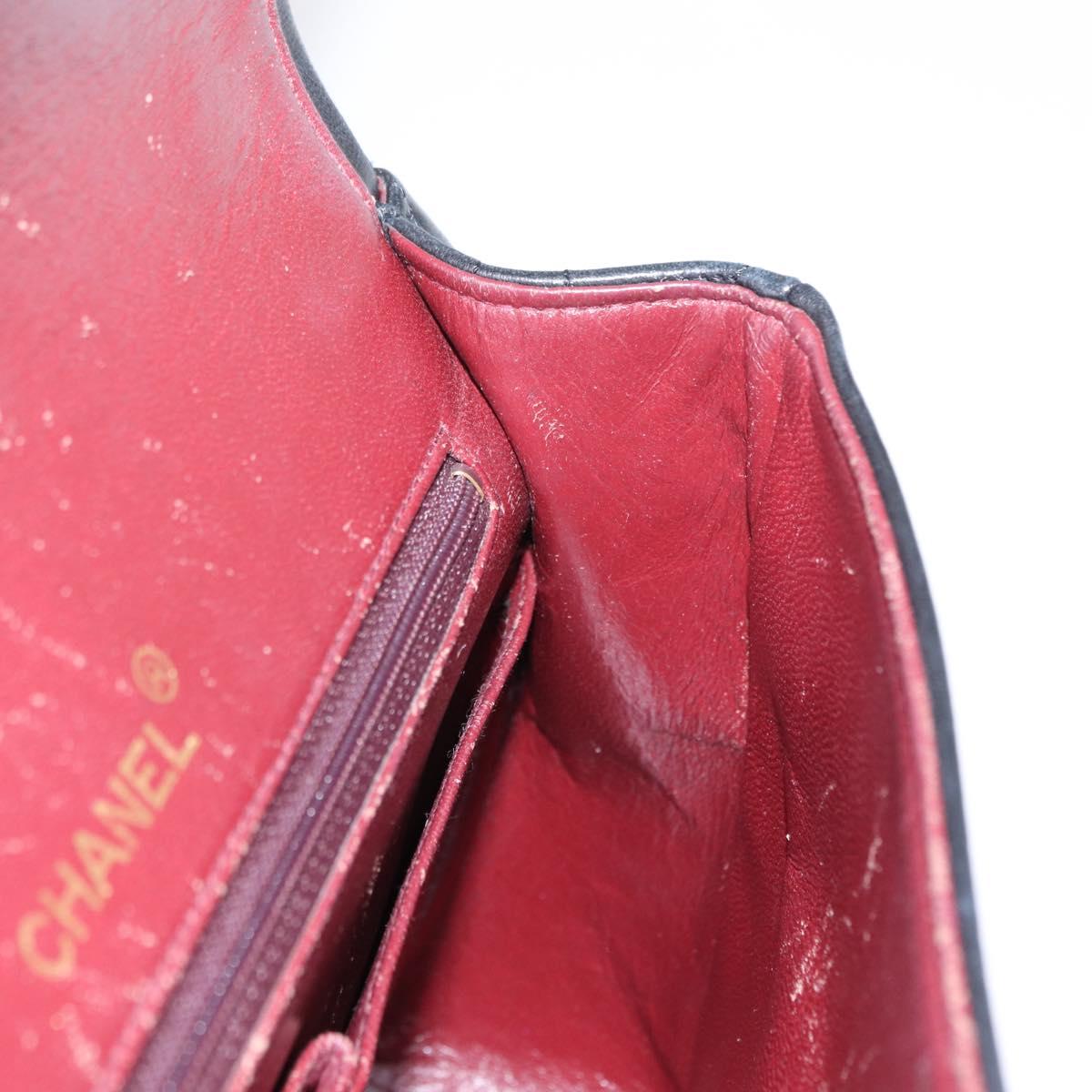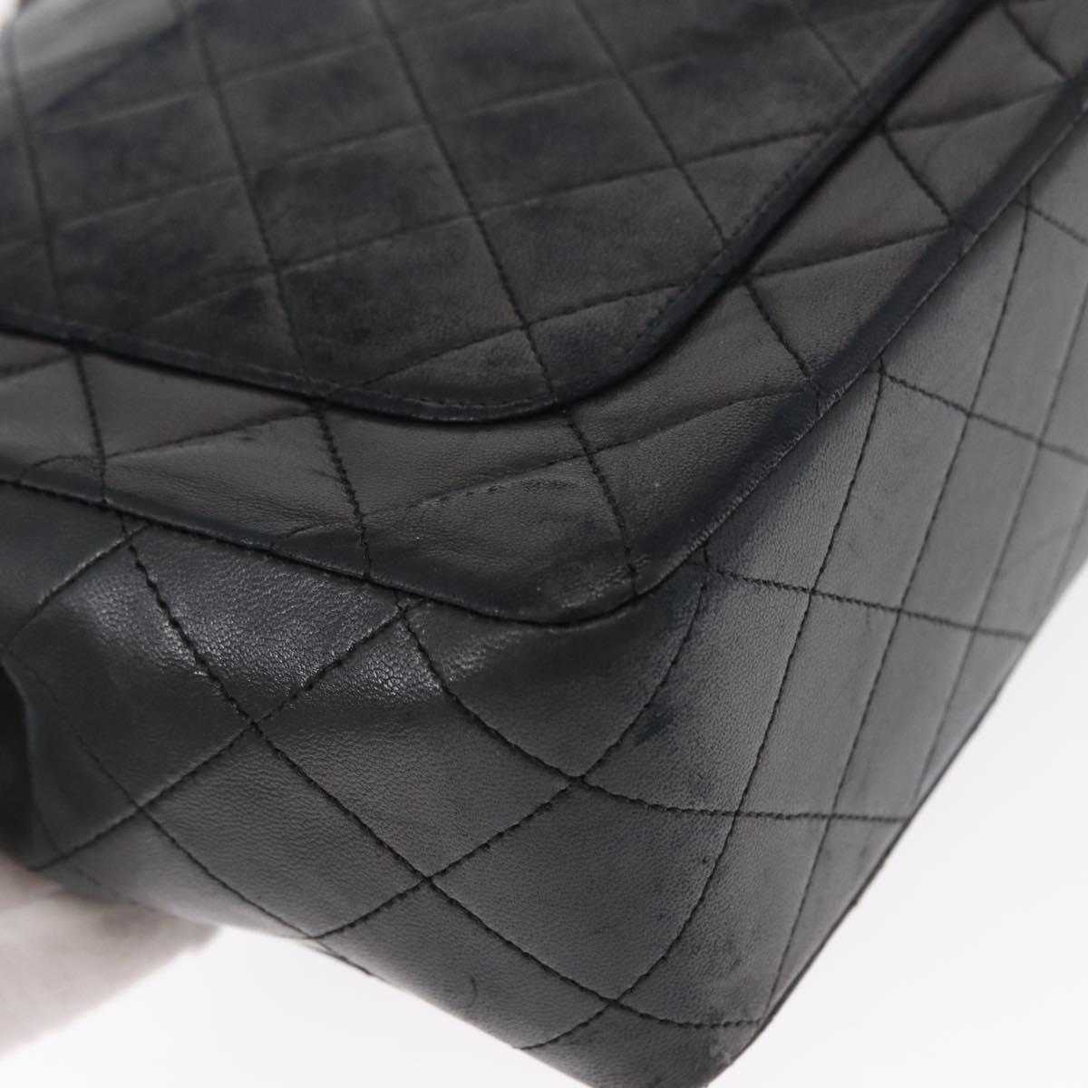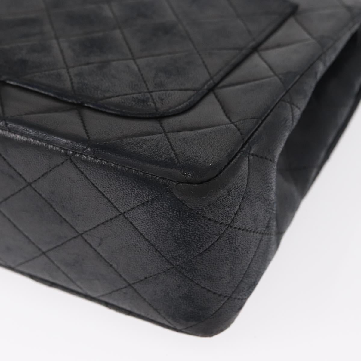 CHANEL Matelasse 25 Double Flap Chain Bag Lamb Skin Black Gold CC - 156055