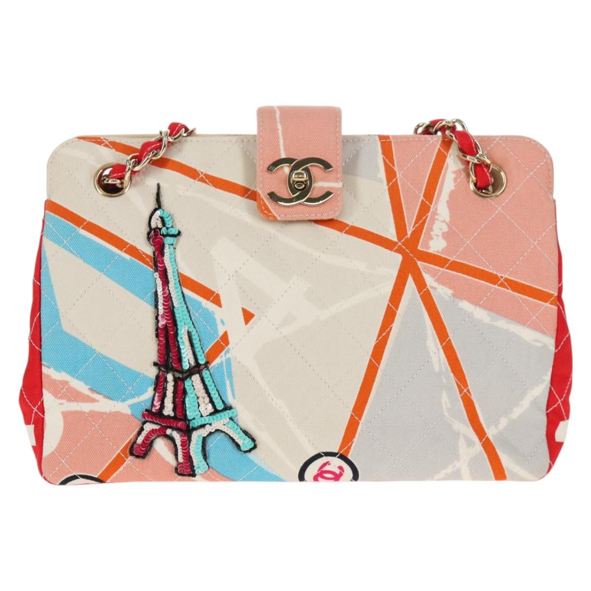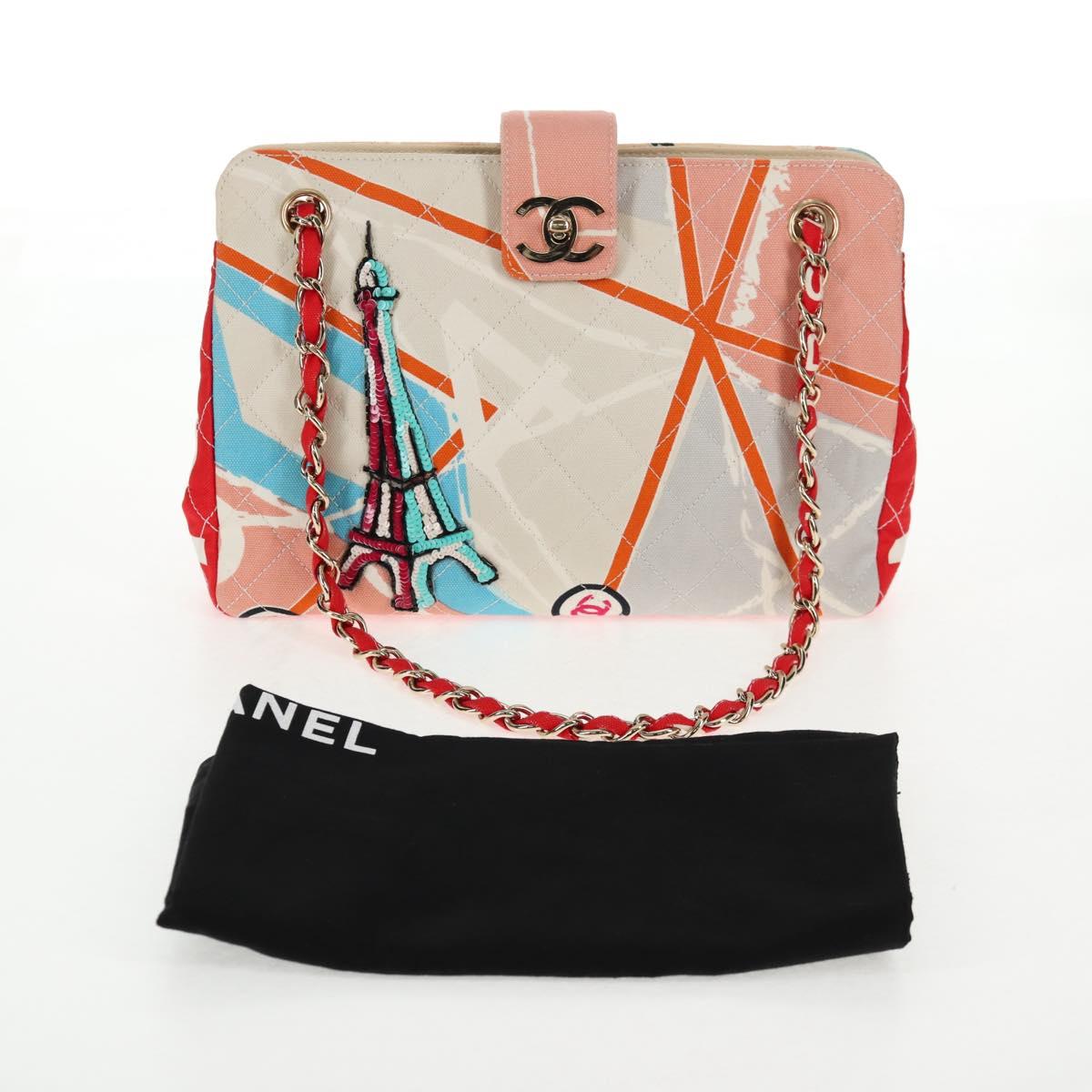 CHANEL Matelasse Chain Shoulder Bag Canvas Pink Gold CC - 128939M