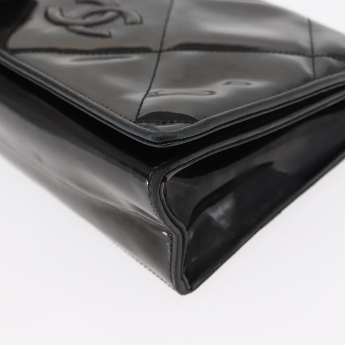 CHANEL Matelasse Chain Shoulder Bag Enamel Black Gold CC - bs31115