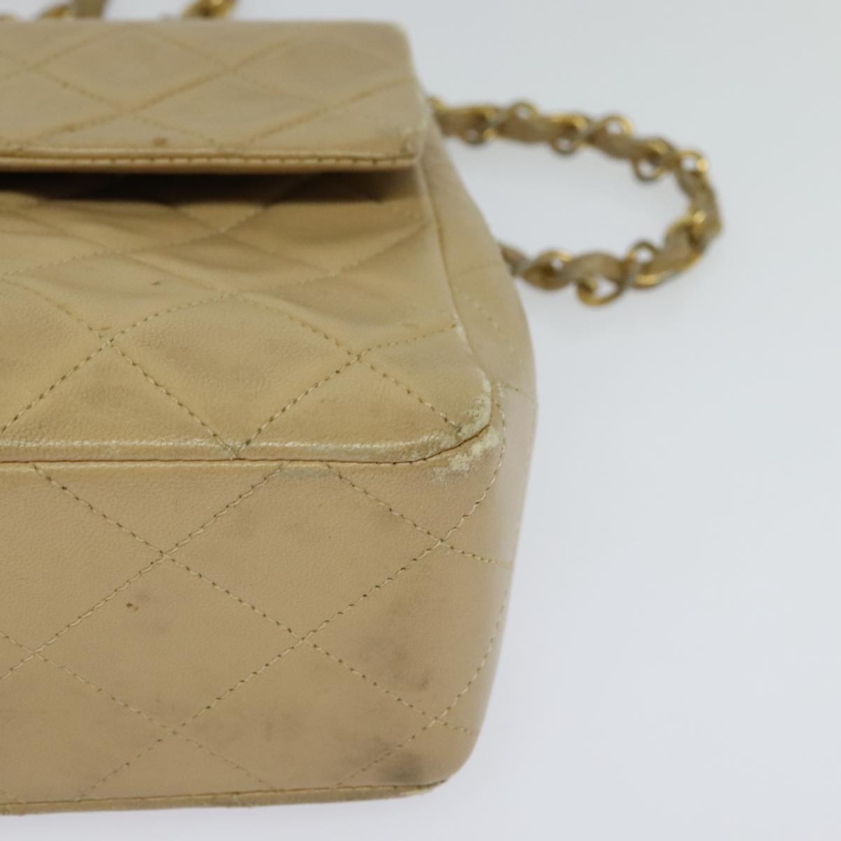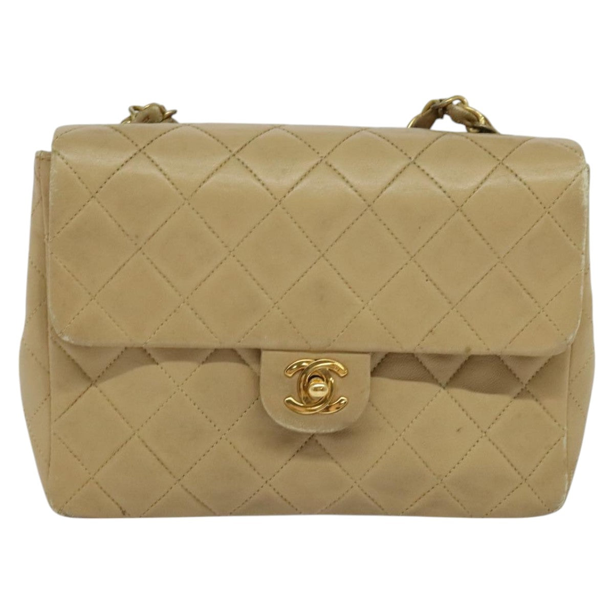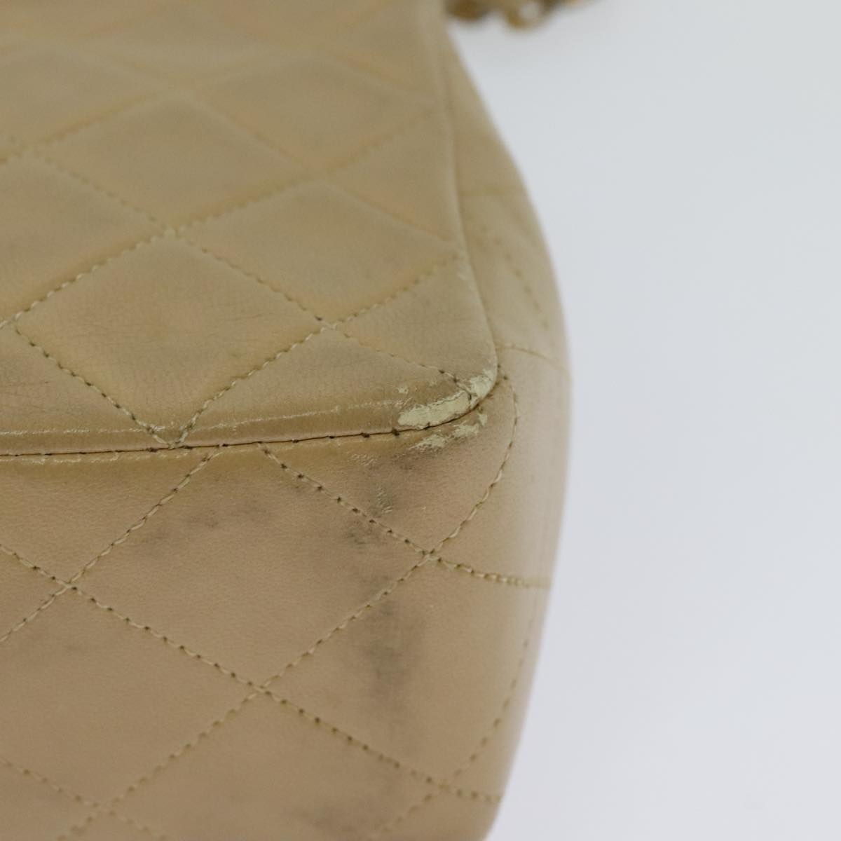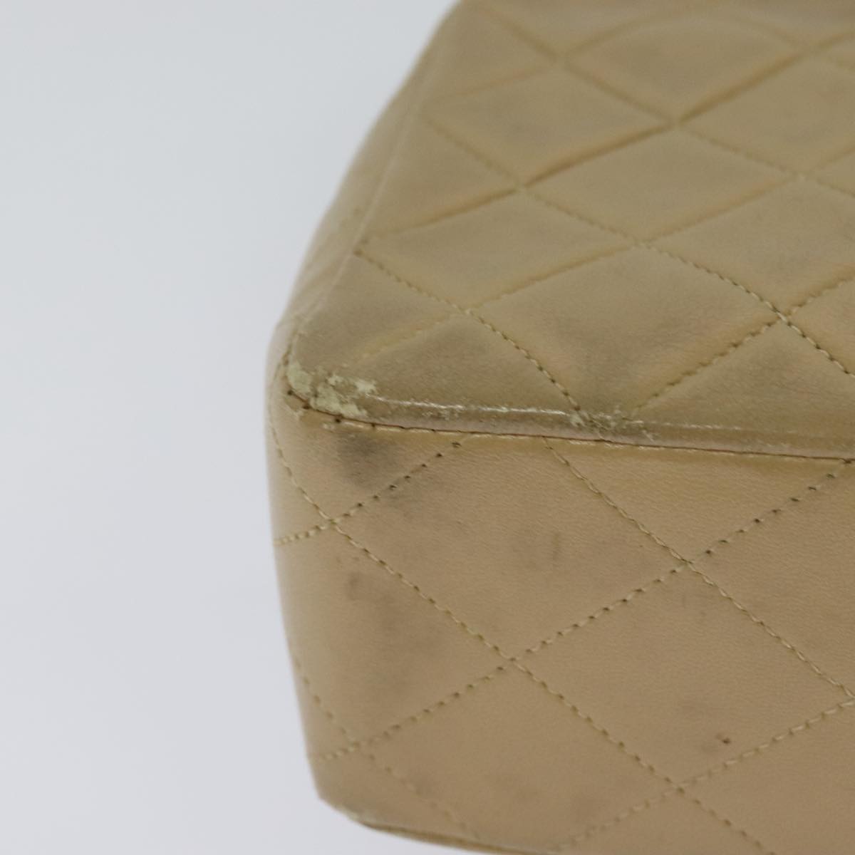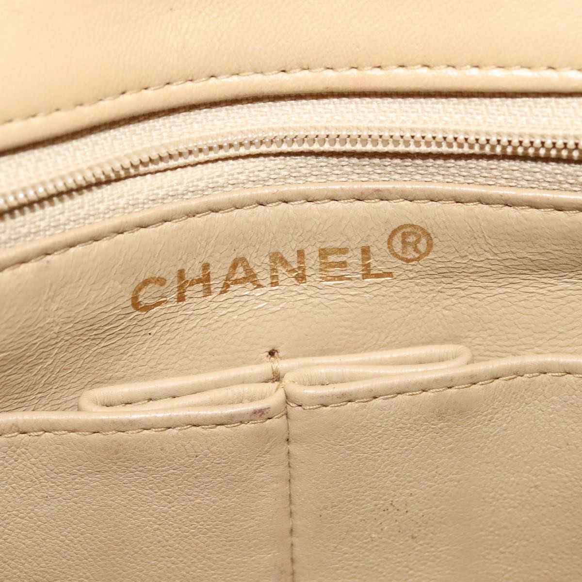 CHANEL Matelasse Chain Shoulder Bag Lamb Skin Beige Gold CC - hk1979