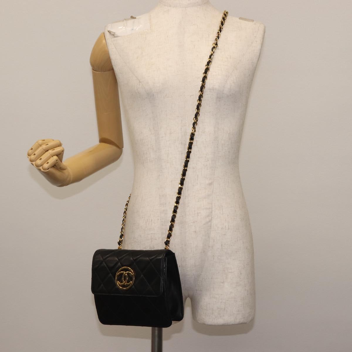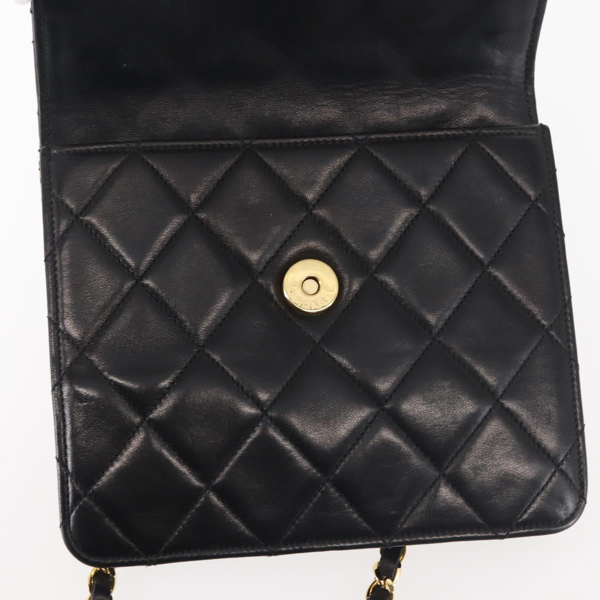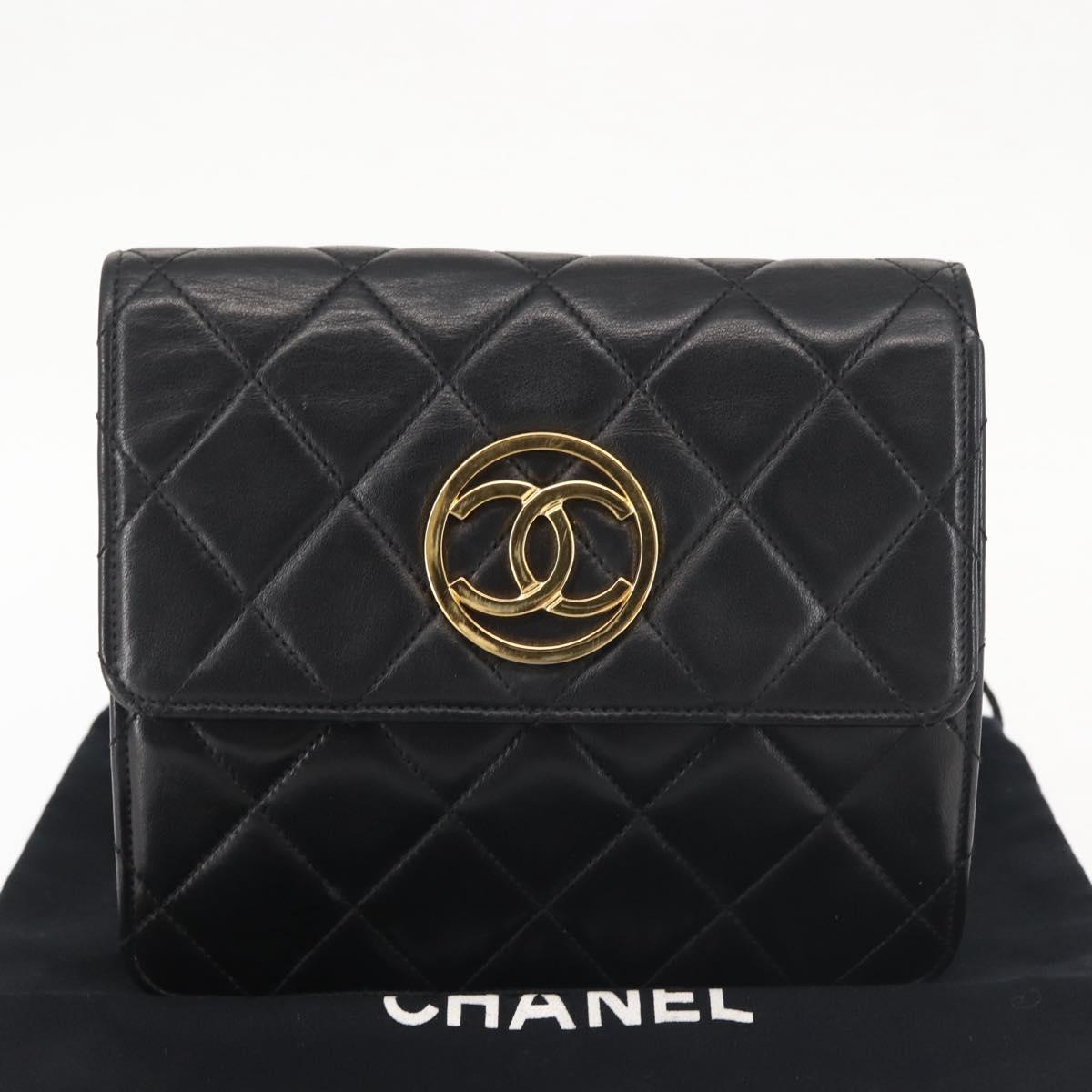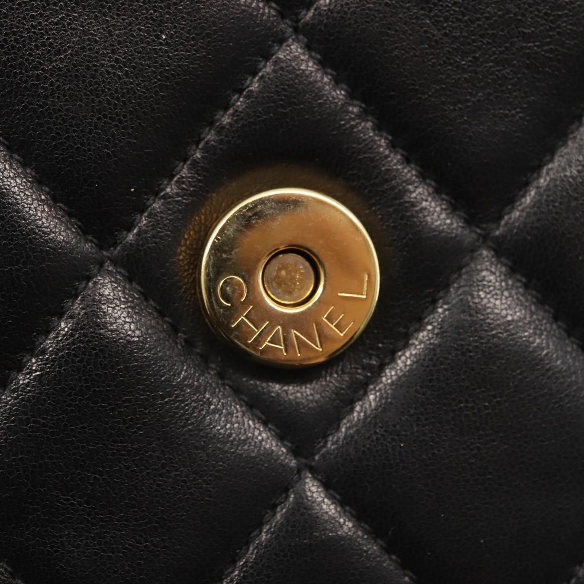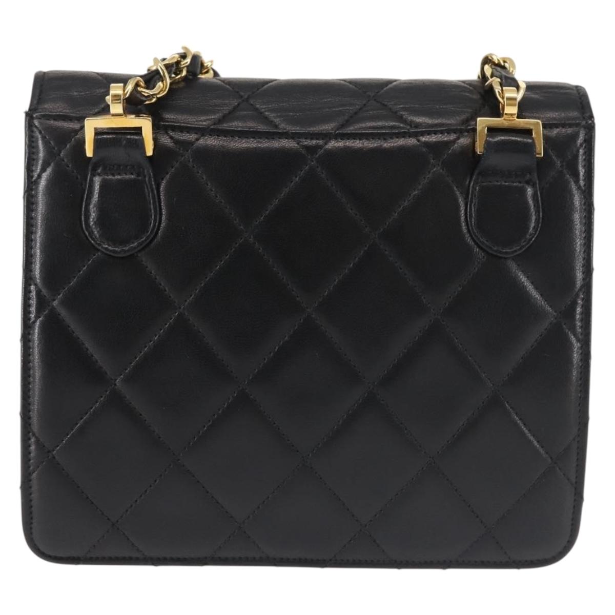 CHANEL Matelasse Chain Shoulder Bag Lamb Skin Black Gold CC - 128938V