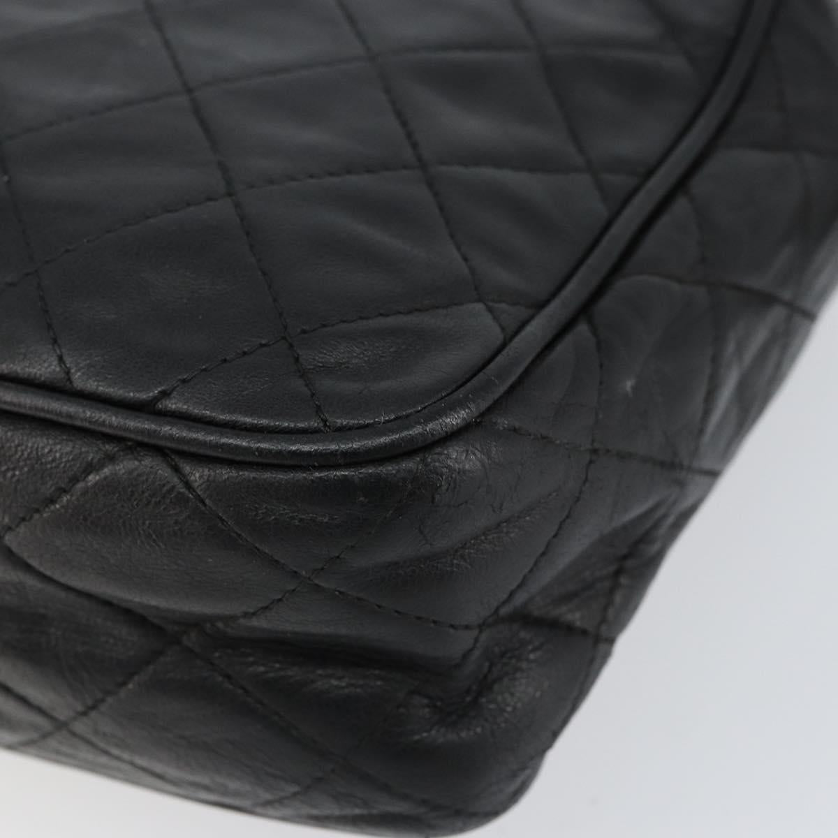 CHANEL Matelasse Chain Shoulder Bag Lamb Skin Black Gold CC - BA8252