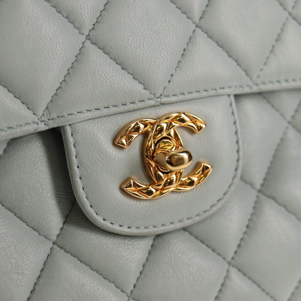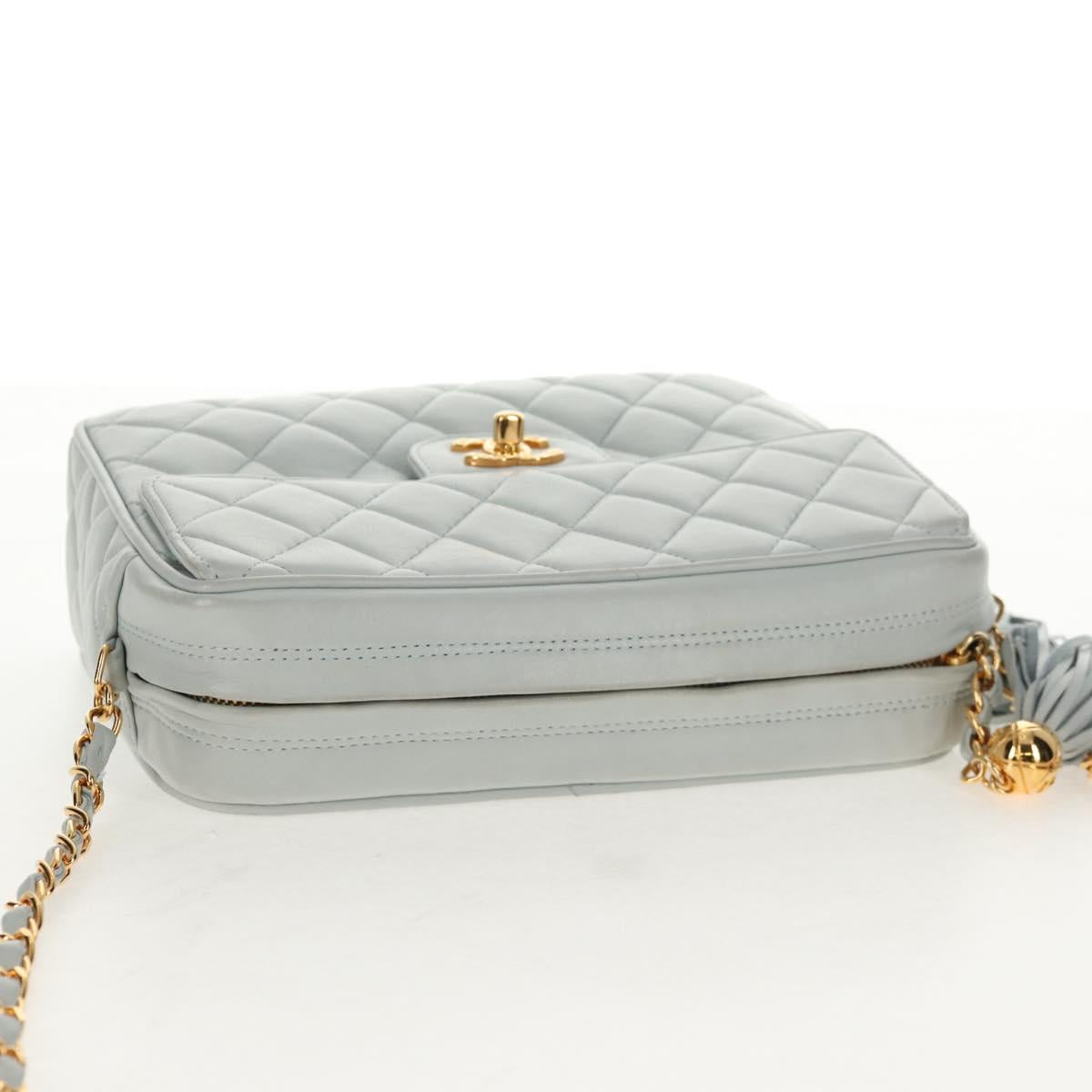 CHANEL Matelasse Chain Shoulder Bag Lamb Skin Light Blue Gold CC - 140125V