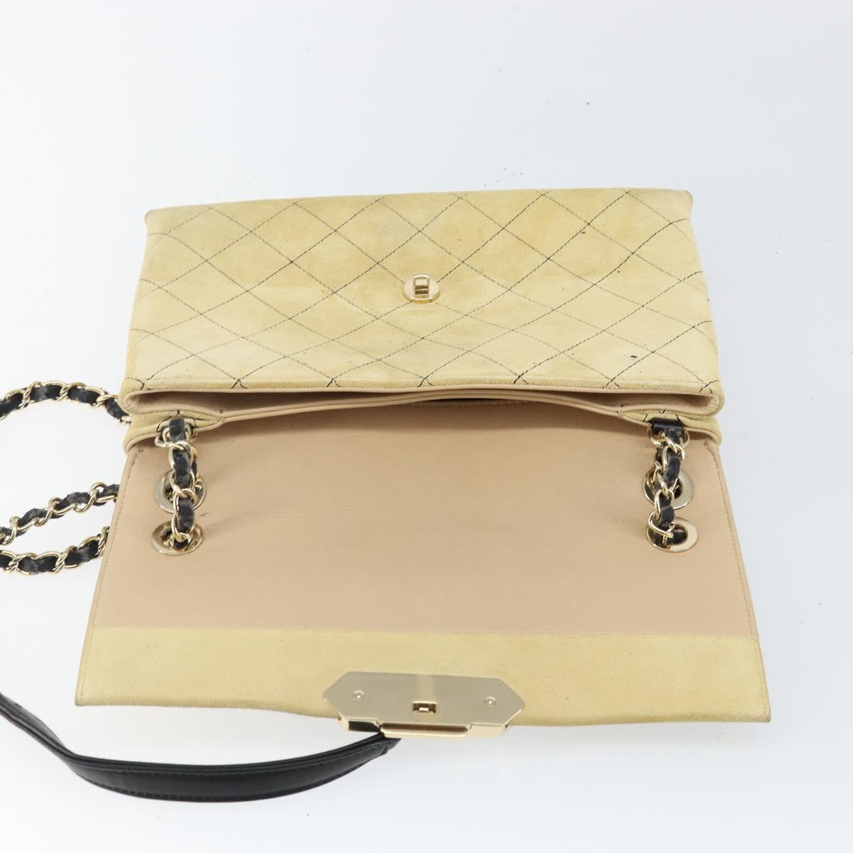 CHANEL Matelasse Chain Shoulder Bag Suede Beige gold CC - bs29483