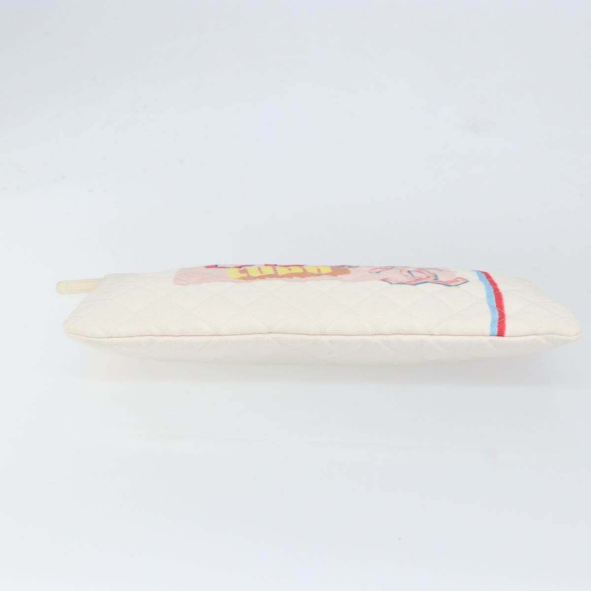 CHANEL Matelasse Clutch Bag Canvas White Silver CC - 154040