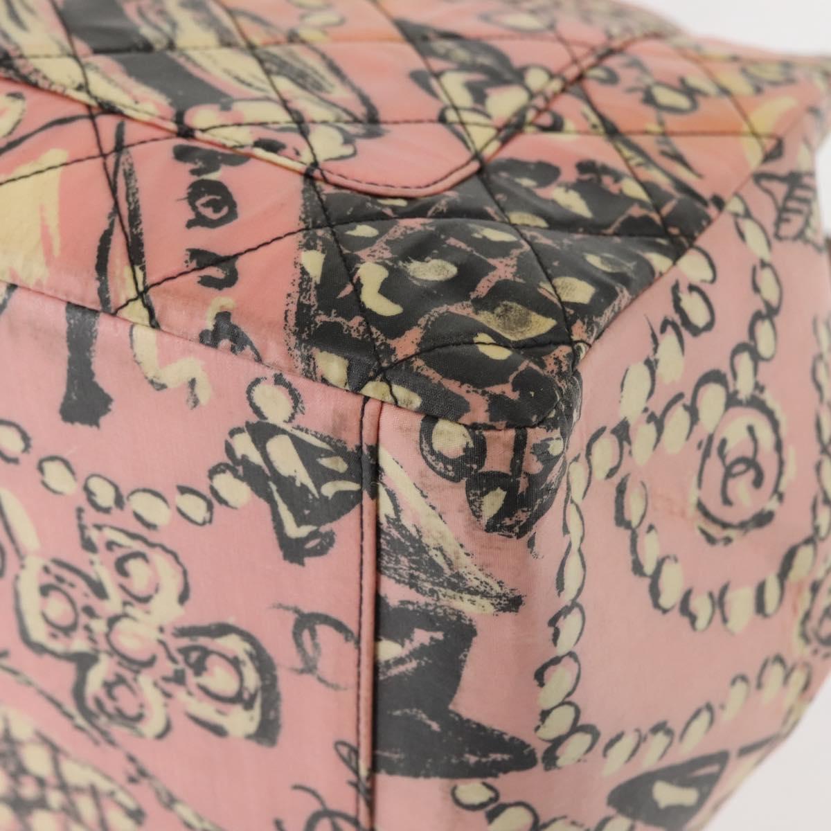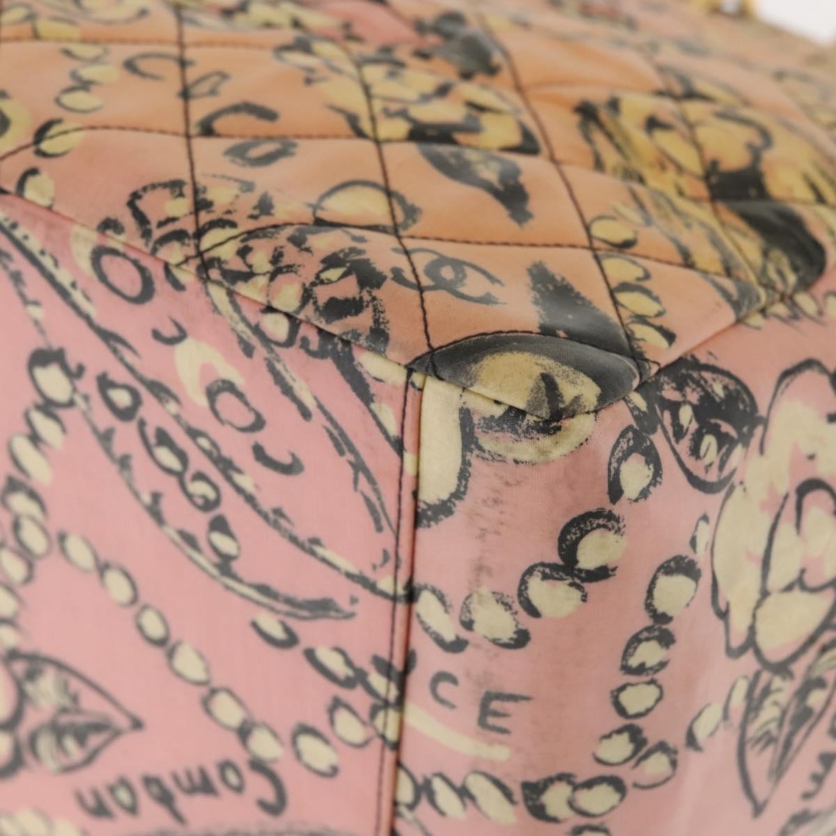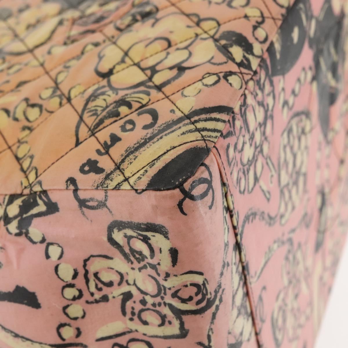CHANEL Matelasse floral Pattern Chain Bag Coated Canvas Pink Gold CC - 143979