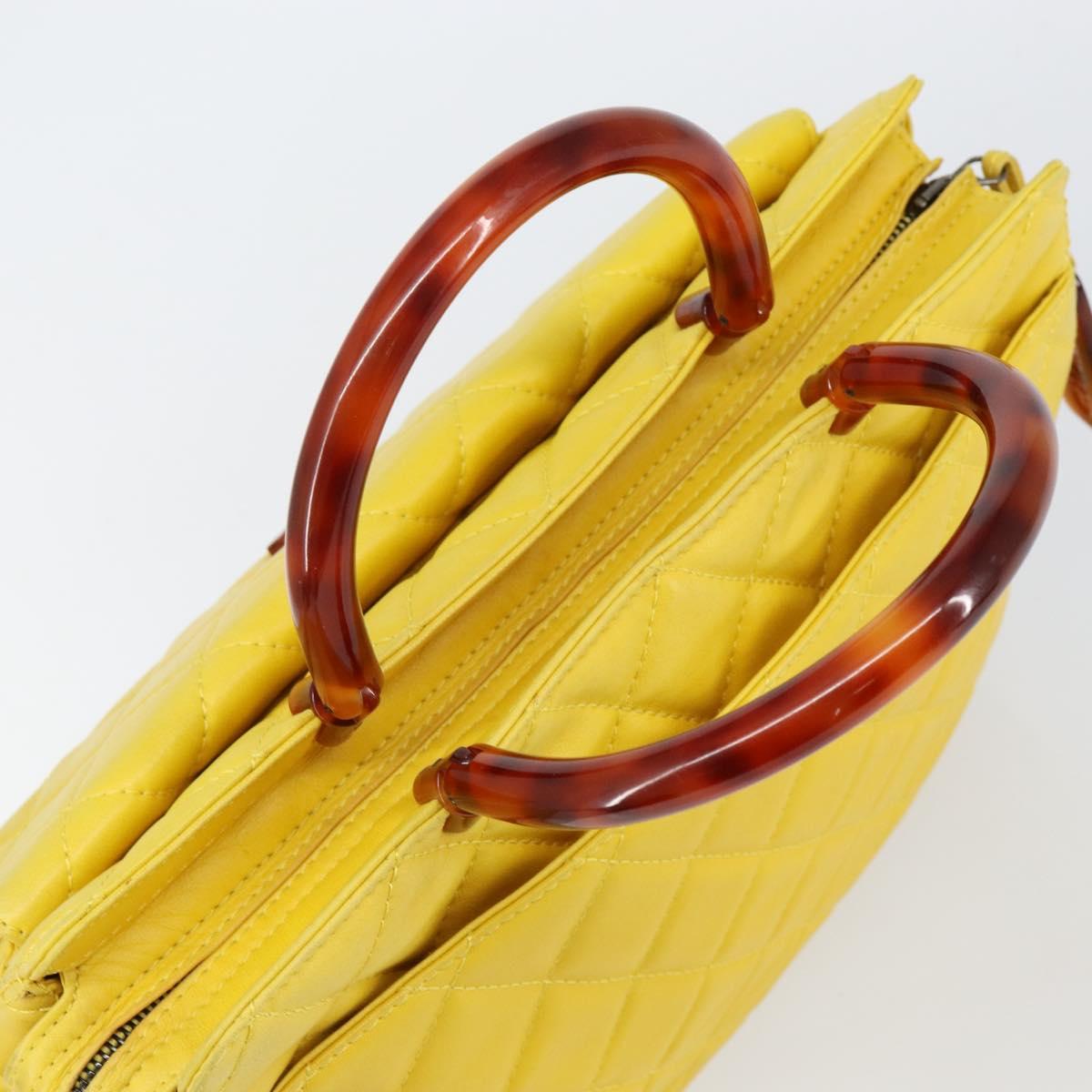 CHANEL Matelasse Hand Bag Lamb Skin Yellow CC - BA8254