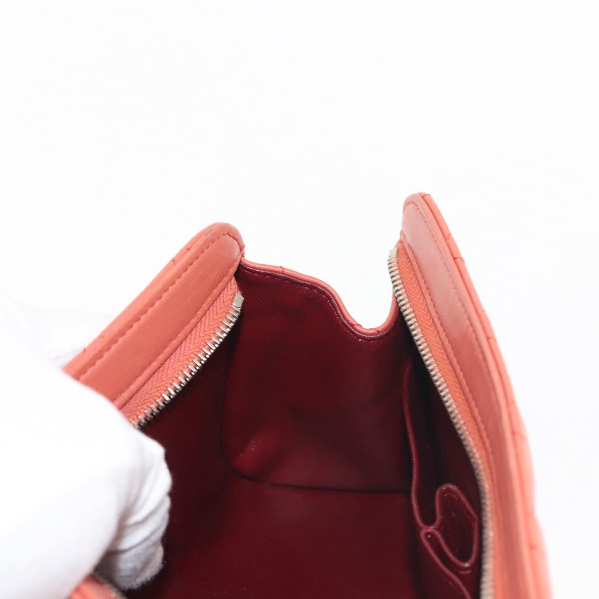 CHANEL Matelasse Pouch Lamb Skin Orange Silver CC - 144810