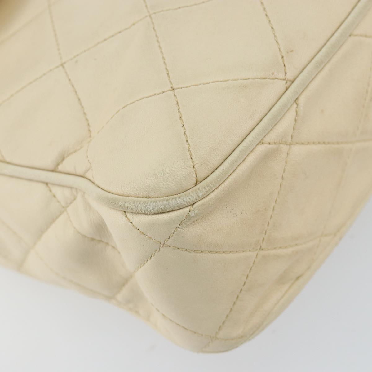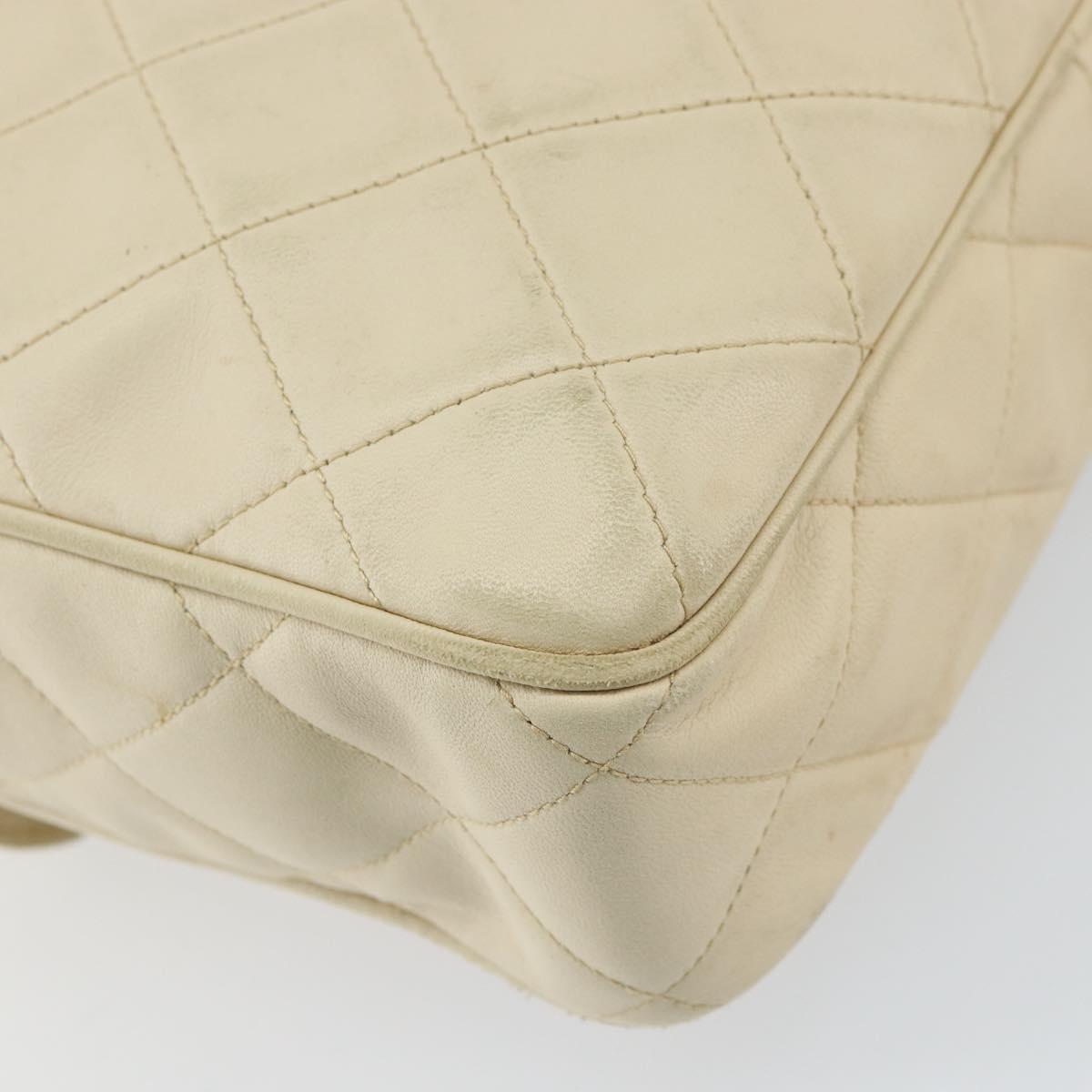 CHANEL Matelasse Shoulder Bag Lamb Skin White Gold CC - 156813