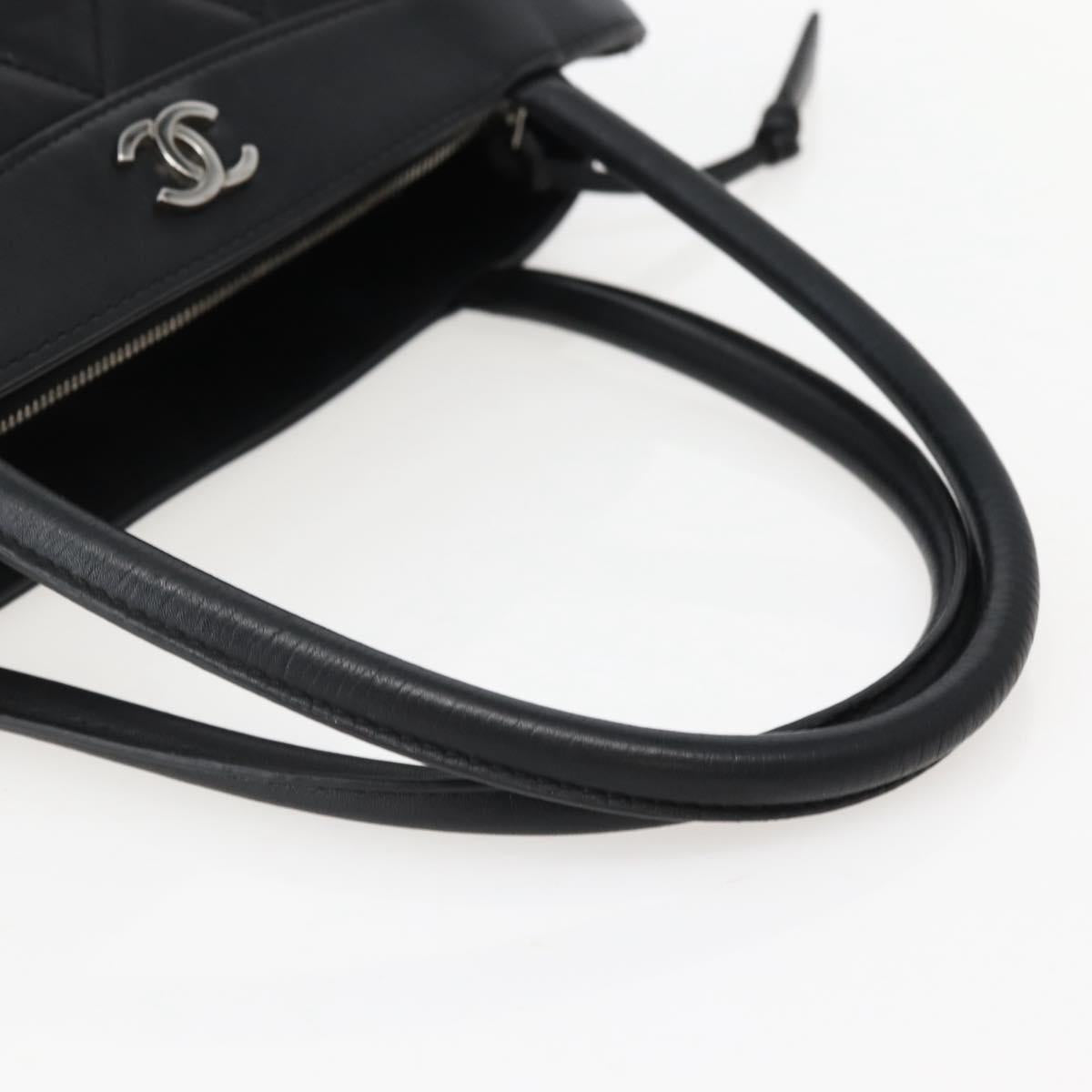CHANEL Matelasse Tote Bag Leather Black Silver CC - BA5989