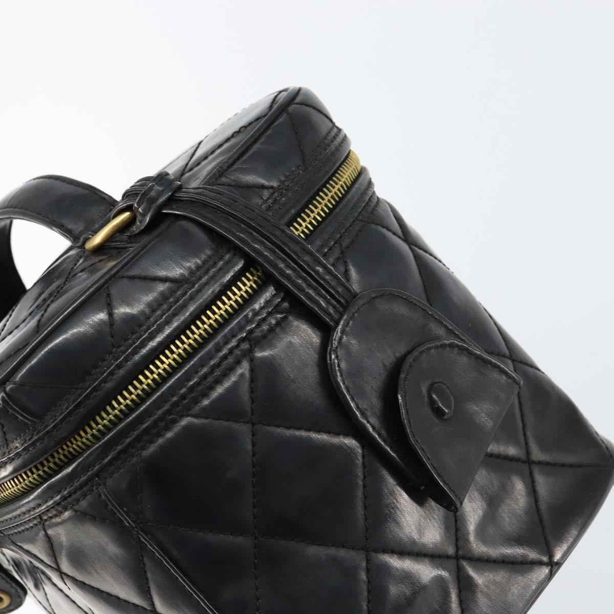 CHANEL Matelasse Vanity Pouch Enamel Black Gold CC - bs31398