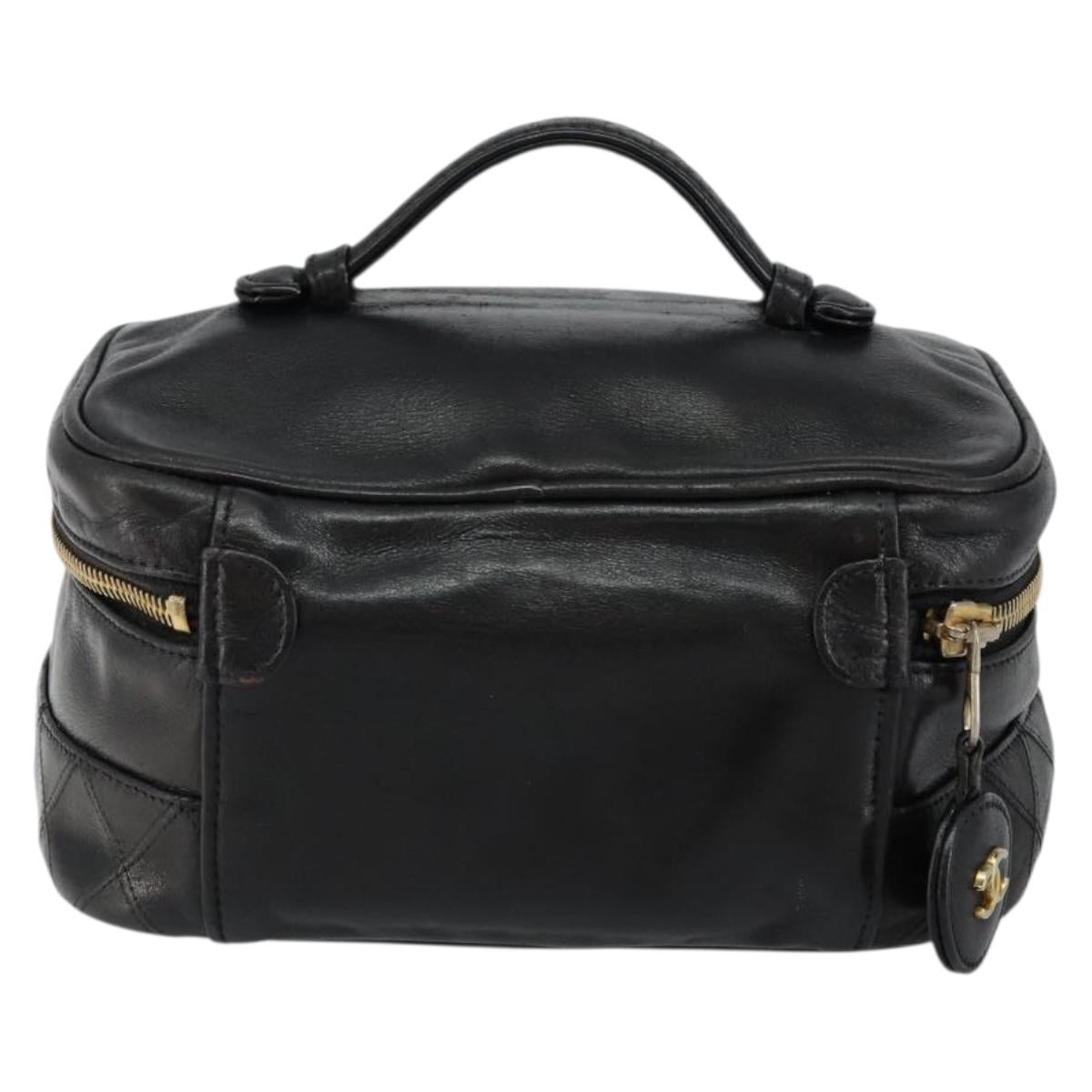 CHANEL Matelasse Vanity Pouch Lamb Skin Black Gold CC - bs29827