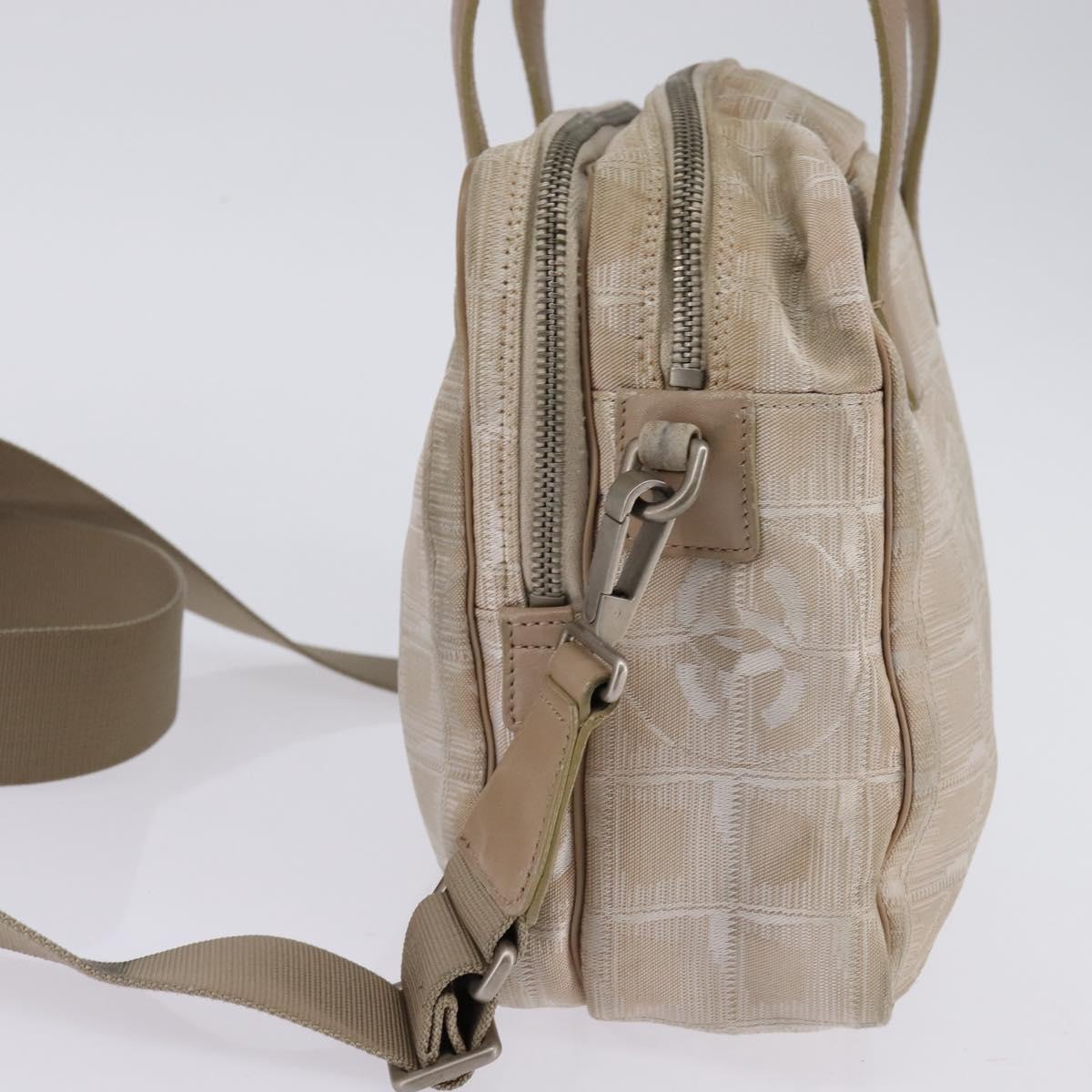 CHANEL New Travel Line Hand Bag Nylon 2way Beige Silver CC - 143907