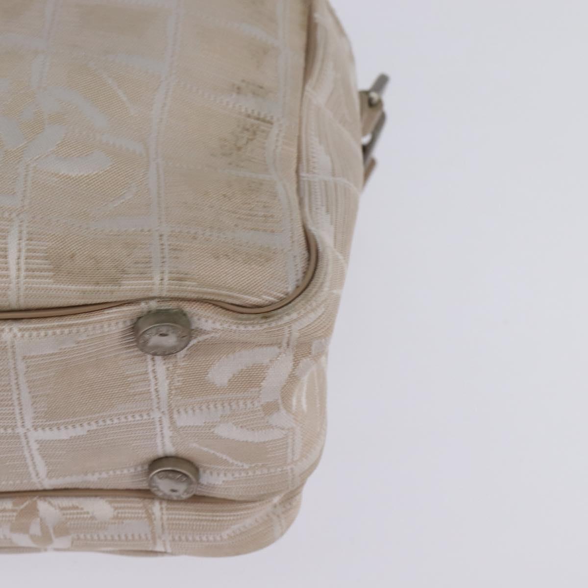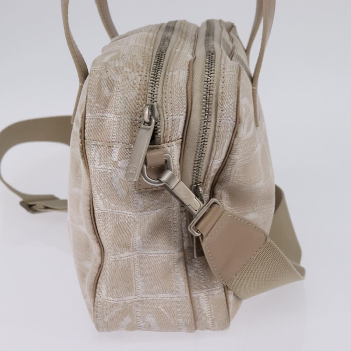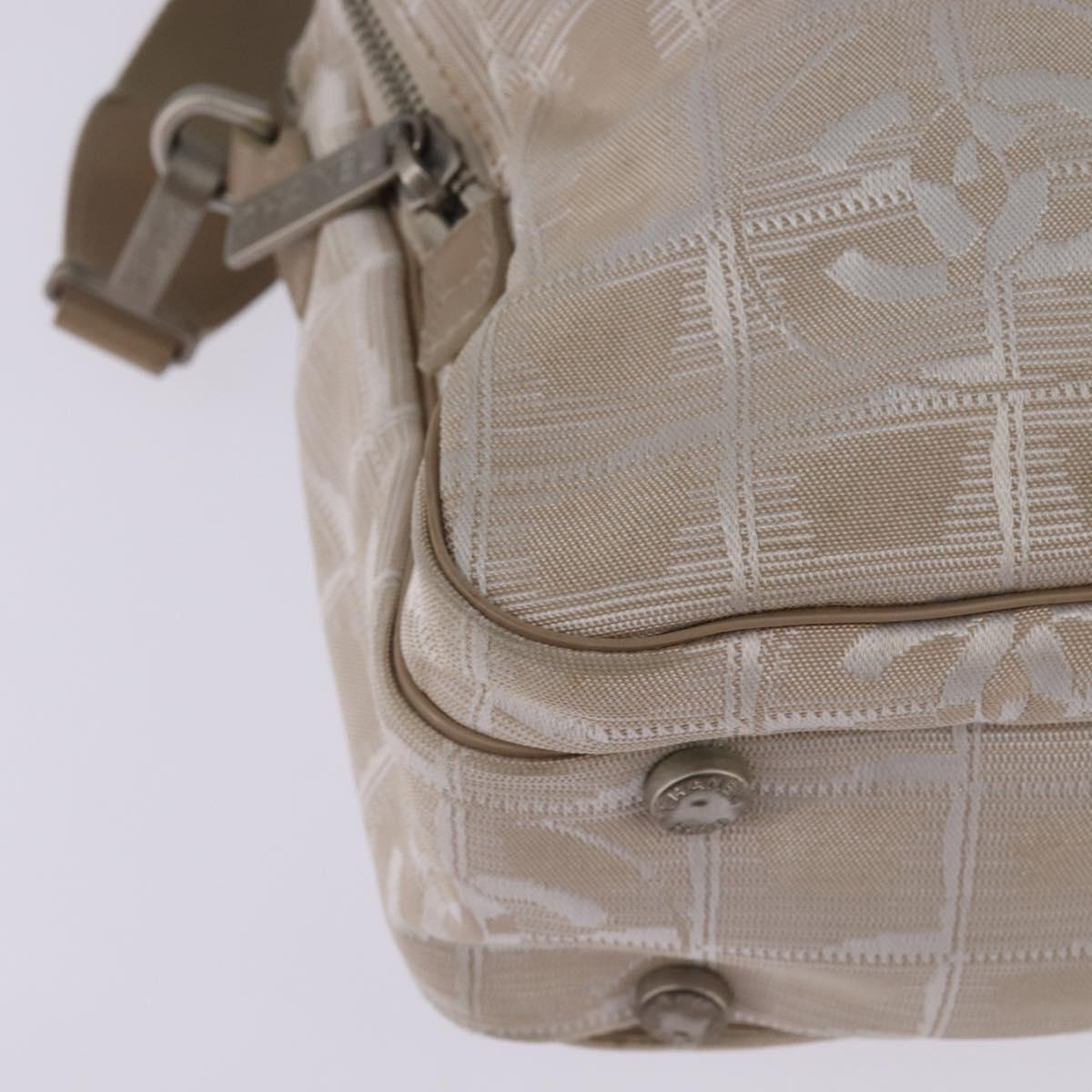 CHANEL New Travel Line Hand Bag Nylon 2way Beige Silver CC - 145353