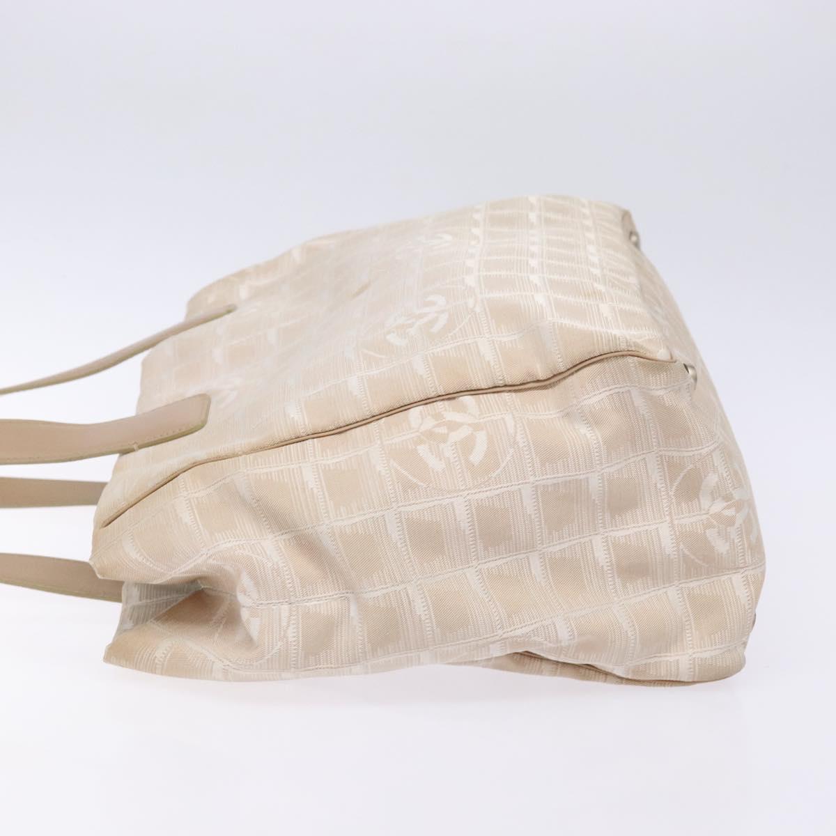 CHANEL New Travel line Hand Bag Nylon Beige Silver CC - 141486