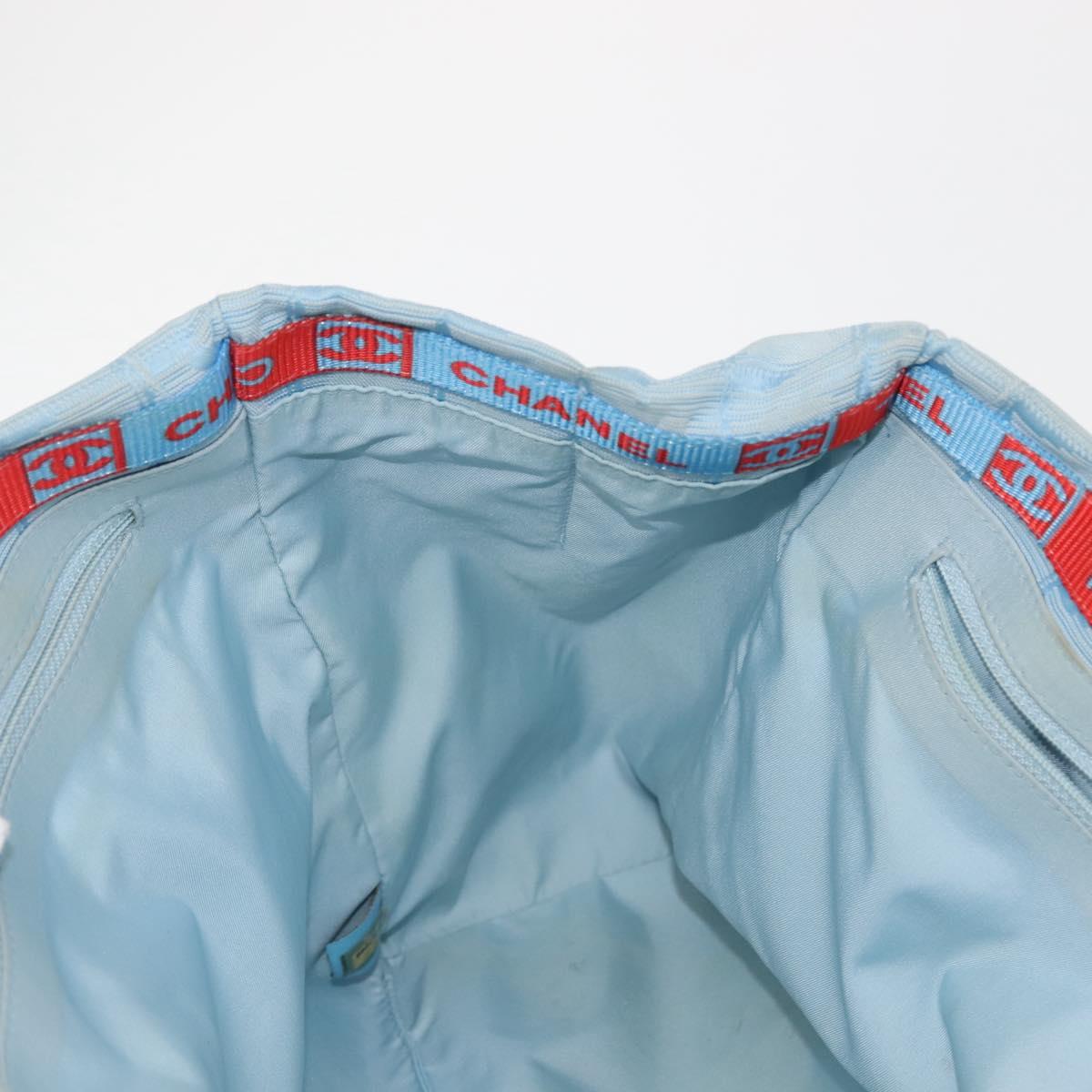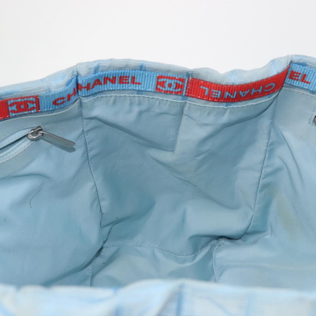CHANEL New Travel Line Tote Bag Nylon Light Blue Silver CC - 145352