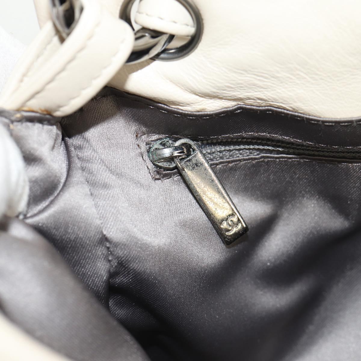 CHANEL Shoulder Bag Lamb Skin White Silver CC - 148619AV