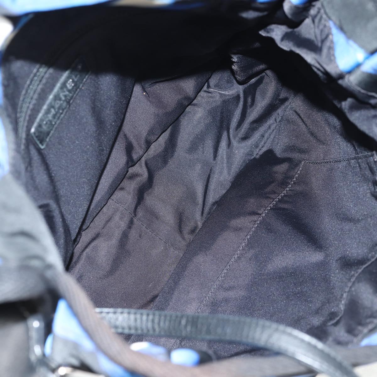 CHANEL Shoulder Bag Nylon Blue Black Silver CC - 141222A