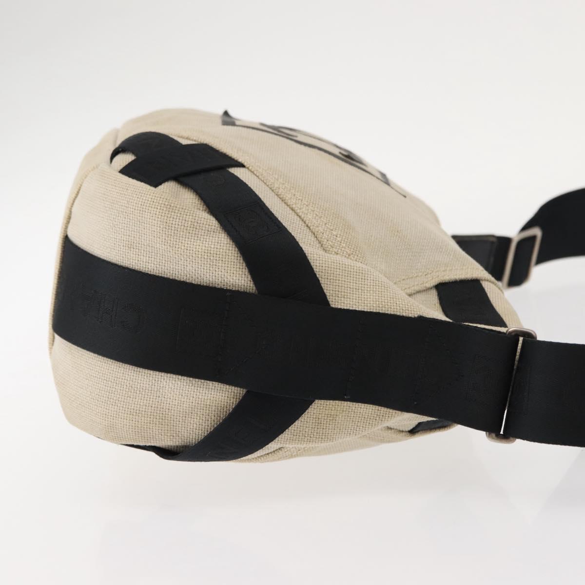 CHANEL Sports COCO Mark Shoulder Bag Canvas Beige Silver CC - 146878