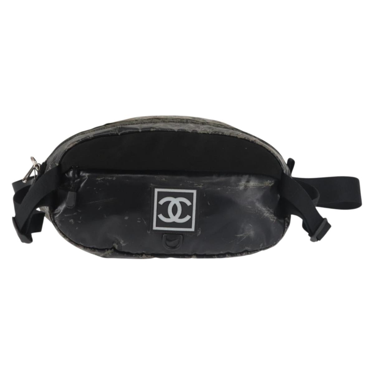 CHANEL Sports COCO Mark Waist Bag Coated Canvas Black CC - 142004